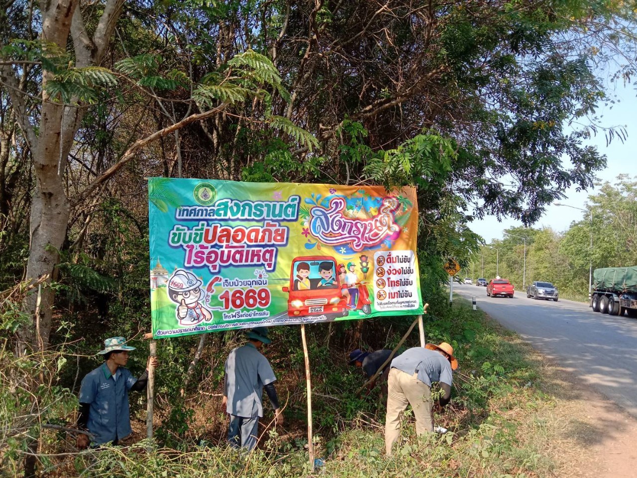 ติดตั้งป้ายประชาสัมพ์เทศกาลสงกรานต์ขับขี่ปลอดภัยไร...