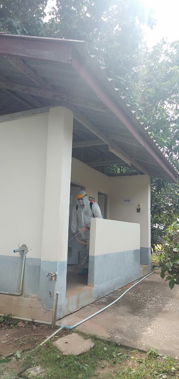 ฉีดแอลกอฮอล์ฆ่าเชื้อสถานที่กักตัวกลุ่มเสี่ยงจากเชื...