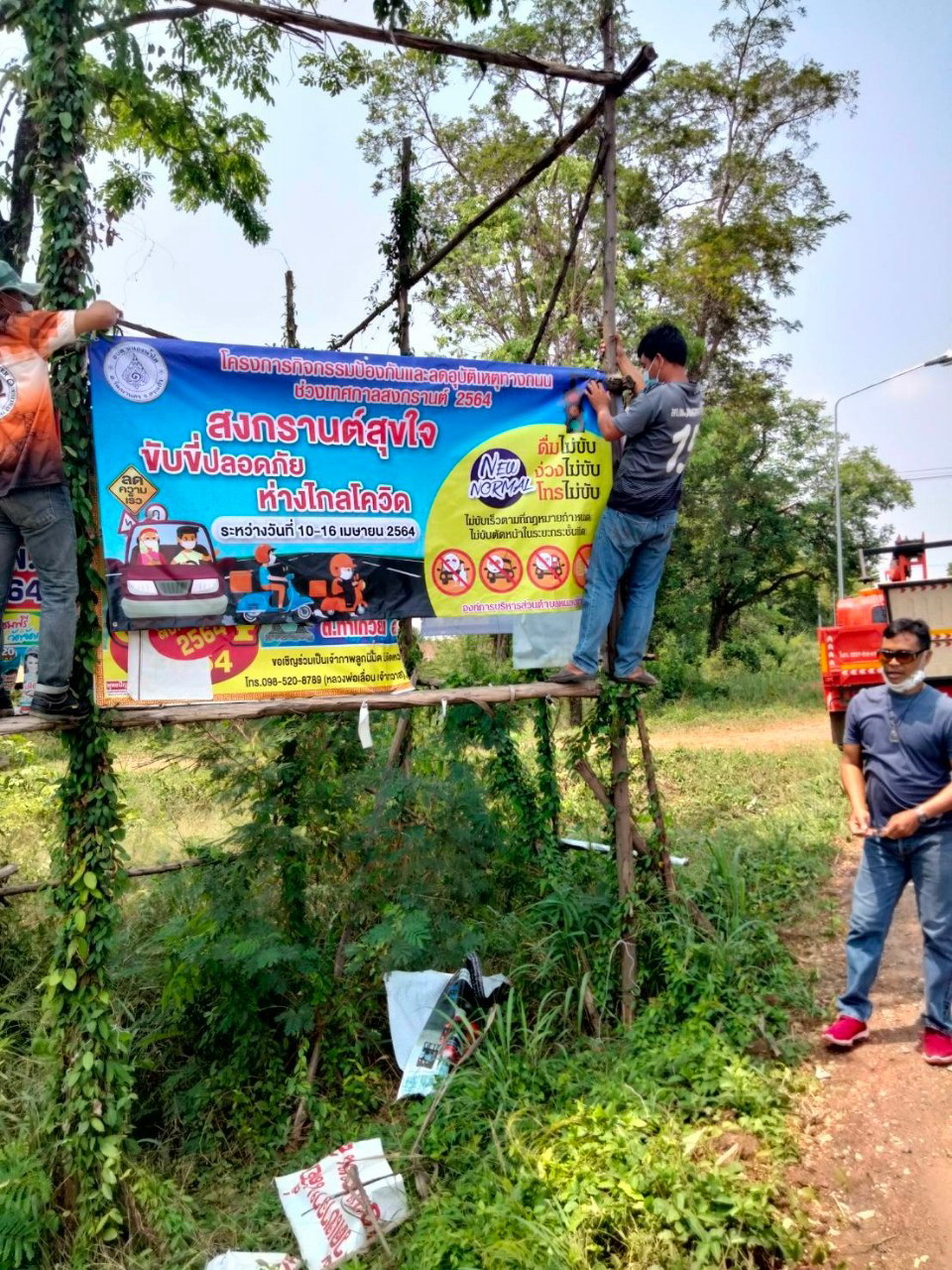 ติดตั้งป้ายรณรงค์ขับขี่ปลอดภัย ช่วงเทศกาลสงกรานต์