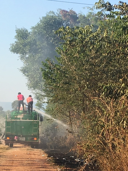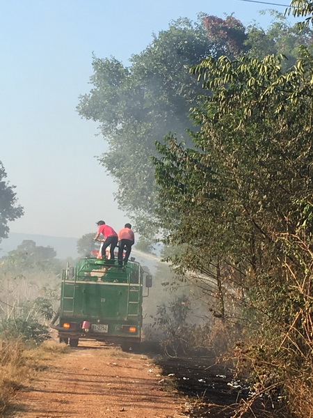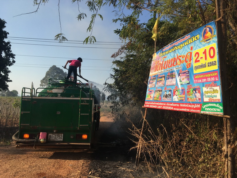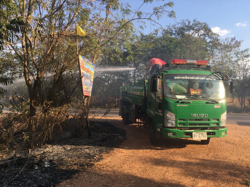 เจ้าหน้าที่งานป้องกันและบรรเทาสาธารณภัย องค์การบริหารส่วนตำบลหนองน้ำใส และพนักงานขับรถบรรทุกน้ำ ได้ช่วยกันออกไปดับไฟที่ลุกไหม้ ป่าข้างทาง หมุ่ที่่ 2 |