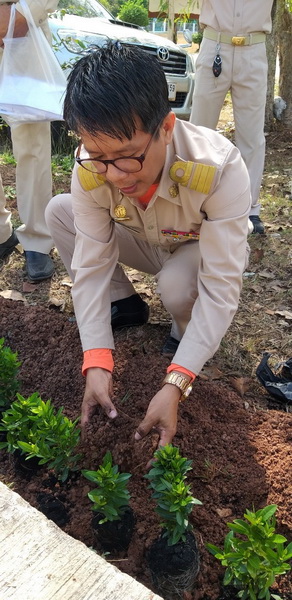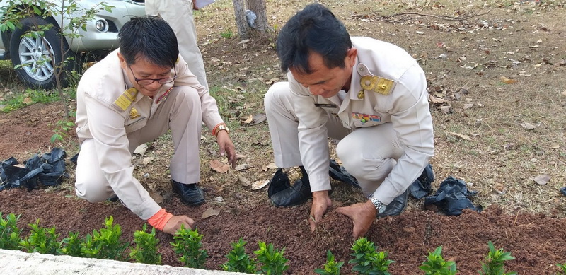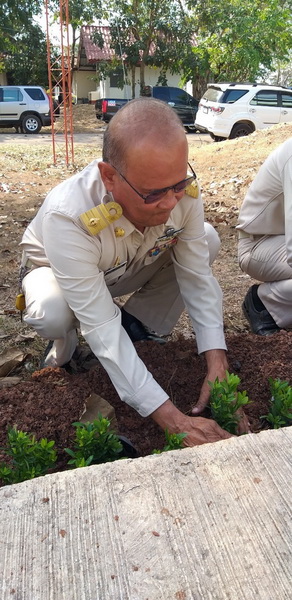 ปลูกต้นดอกเข็ม เพื่อปรับปรุงภูมิทัศน์ ณ บริเวณทางขึ้นหอประชุมองค์การบริหารส่วนตำบลหนองน้ำใส เพื่อสร้างความร่มรื่น และสวยงาม |