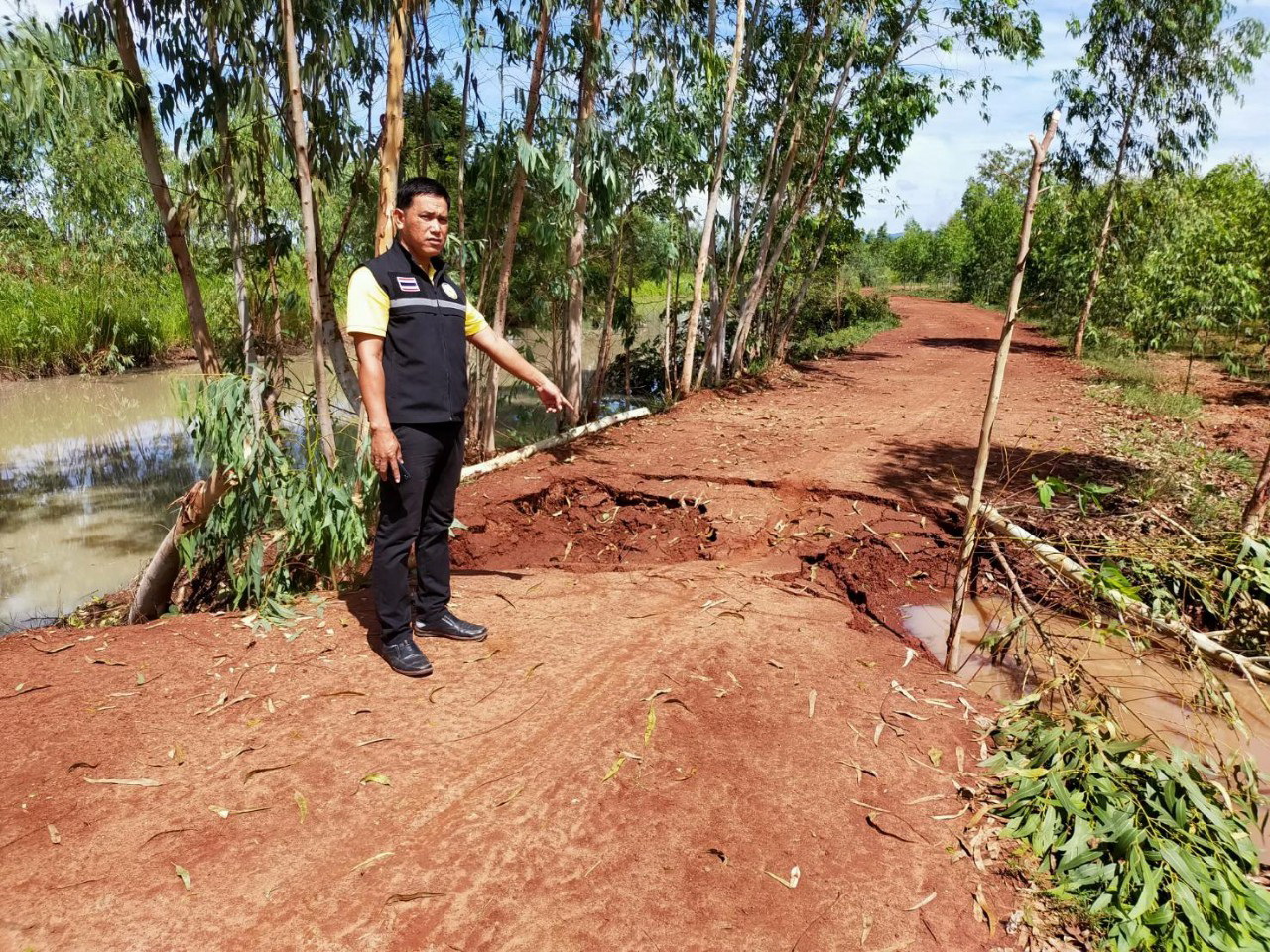 เจ้าหน้าที่ลงพื้นที่ตรวจสอบถนนขาดชำรุด เพื่อการเกษตร หมู่ที่1