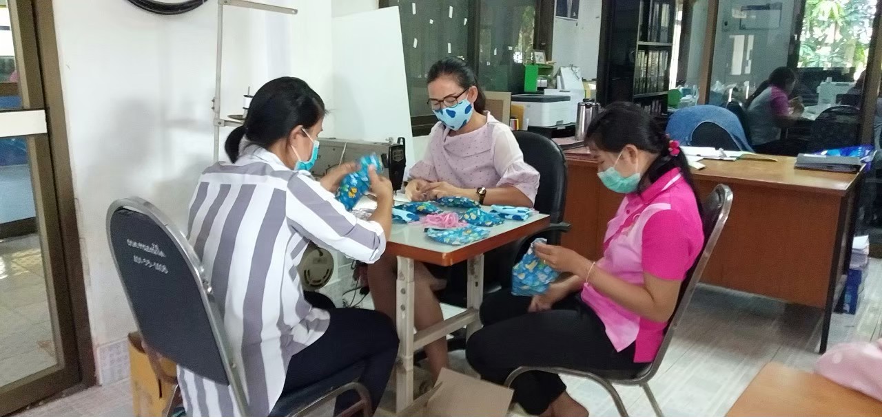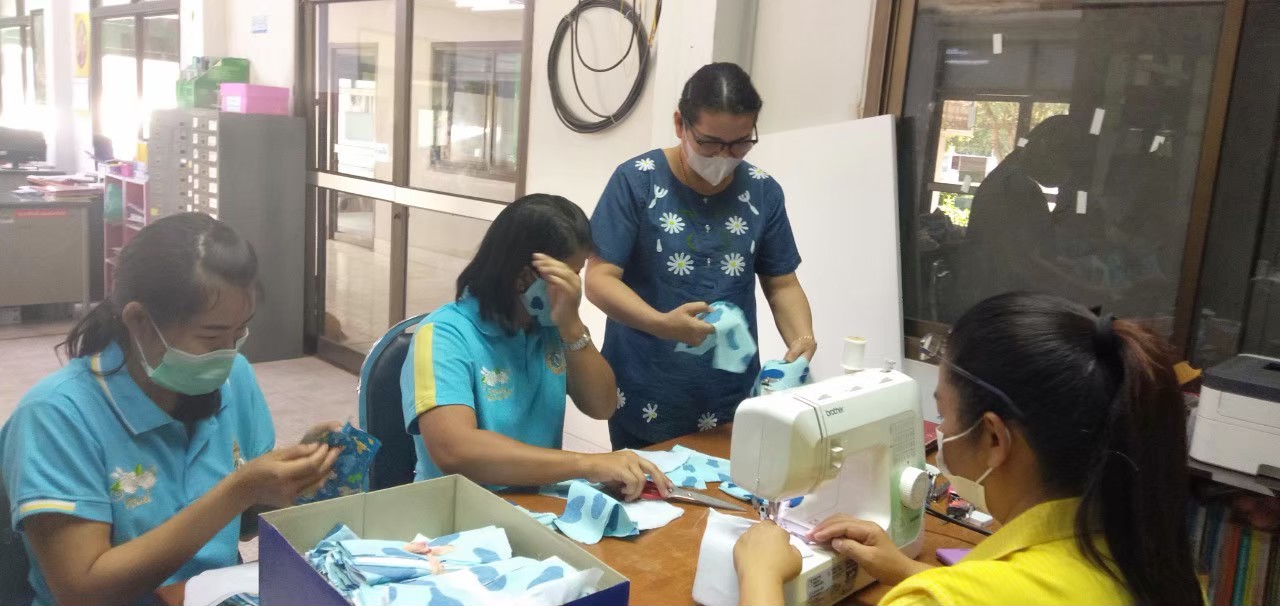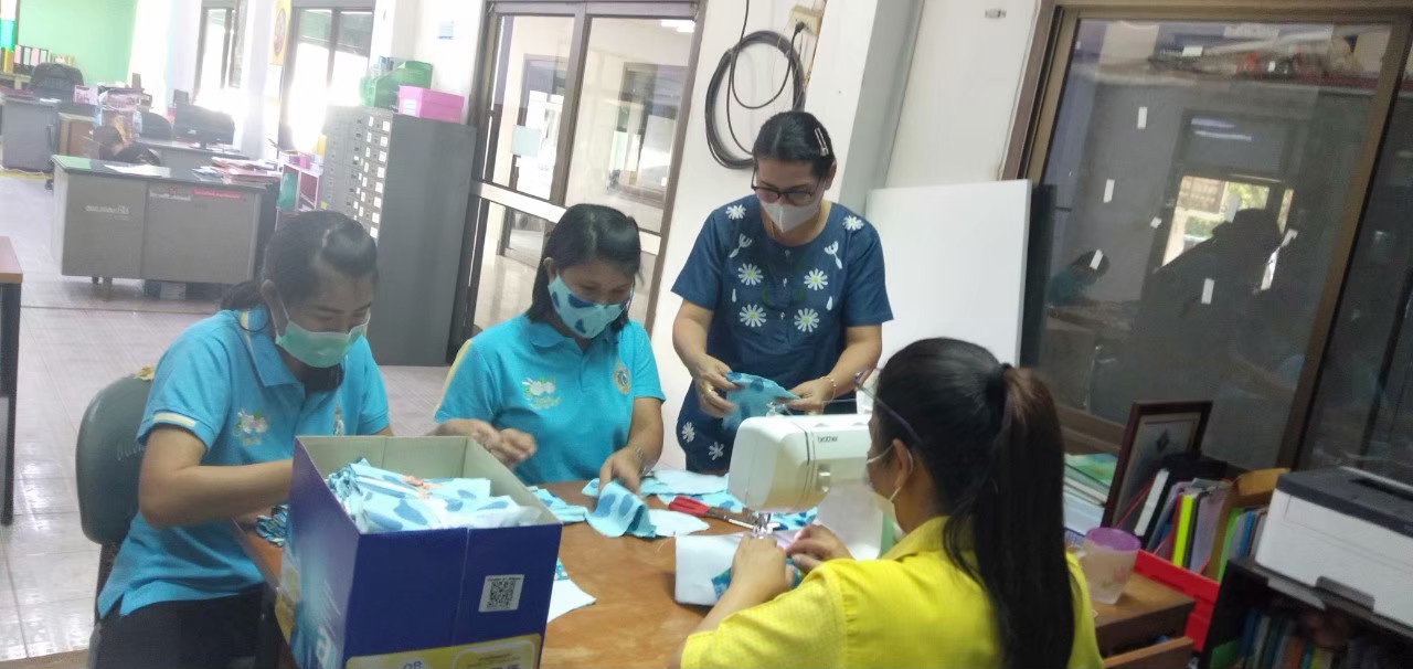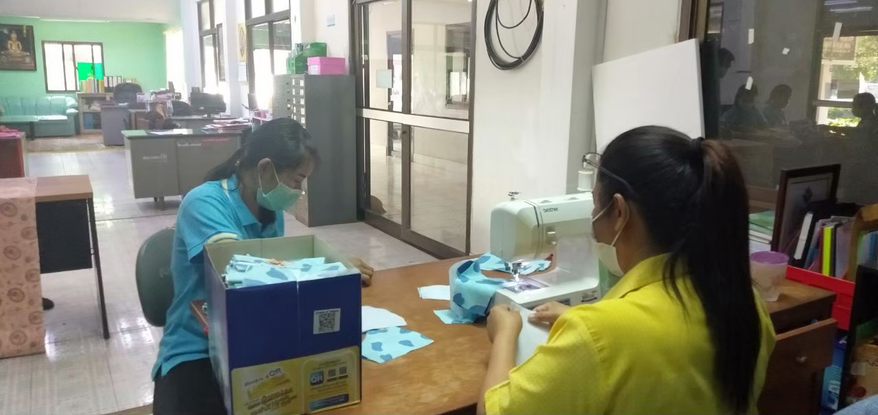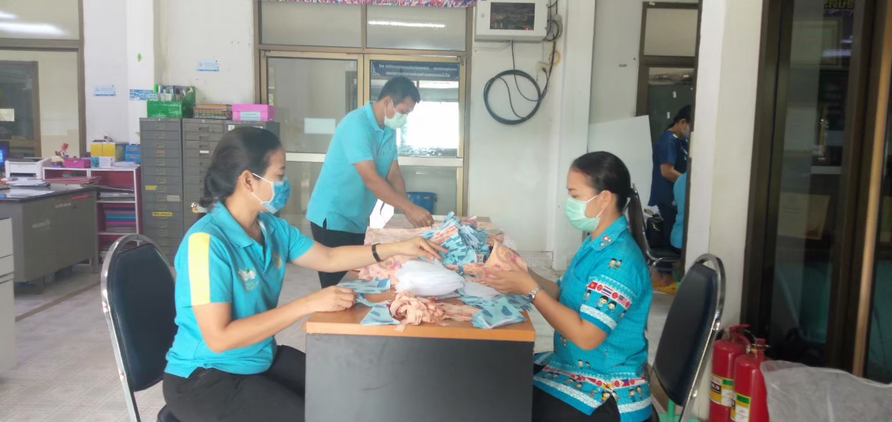 กิจกรรมการป้องกันโรคติดเชือไวรัสโคโรนา 2019 การตั้งจุดคัดกรอง และตัดหน้ากากผ้าเพื่อแจกประชาชน |