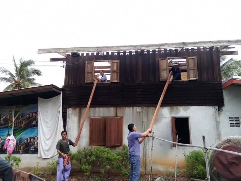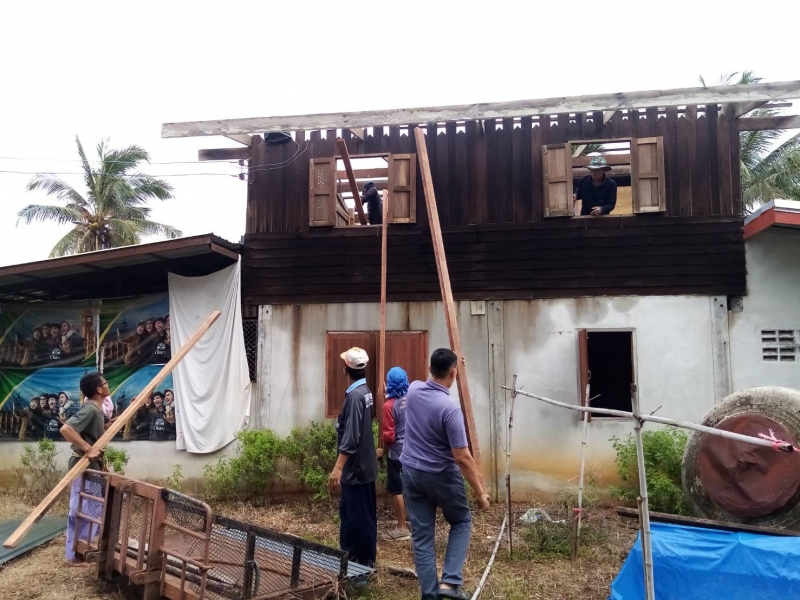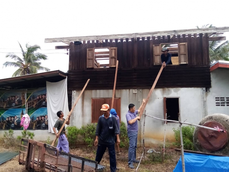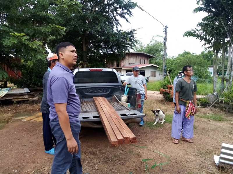 และมีผู้นำชุมชน และชาวบ้าน ได้ช่วยเหลือกันในการซ่อมแซมบ้านที่พัง