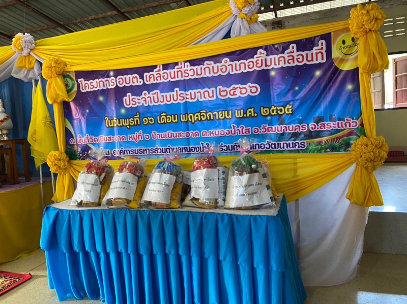 เมื่อวันที่ 16 พย 2565 เวลา 08.30น. ทางคณะท่านนายอำเภอวัฒนานคร พร้อมทั้งคณะท่านผู้บริหารหัวหน้าส่วนราชการเจ้าหน้าที่องค์การบริหารส่วนตำบลหนองน้ำใสทุกท่านและท่านกำนันผู้ใหญ่สมาชิกสภาองค์การบริหารส่วนตำบลหนองน้ำใสทั้ง 10 หมู่ ได้ร่วมลงพื้นที่จัดกิจกรรม อบต เคลื่อนที่ ณ วัดบ้านเนินสะอาด หมู่ที่ 6 บ้านเนินสะอาด ต.หนองน้ำใส อ.วัฒนานคร จ. สระแก้ว เพื่อความสะดวกของพ่อแม่พี่น้องชาวบ้านตำบลหนองน้ำใส