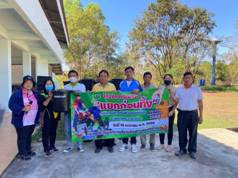 นายเทียม ทององค์ นายกองค์การบริหารส่วนตำบลหนองน้ำใส ได้เป็นประธานพิธีเปิดโครงการณรงค์แยกก่อนทิ้งองค์การบริหารส่วนตำบลหนองน้ำใส ประจำปีงบประมาณ 2567 ณ หอประชุมองค์การบริหารส่วนตำบลหนองน้ำใส โดยมีการอบรมของ สำนักปลัดโดยนางนุชรี พรมทิพย์ นักพัฒนาชุมชนชำนาญการ องค์การบริหารส่วนตำบลหนองน้ำใส และมีการให้ความรู้ผู้ที่มาอบรมเกี่ยวกับการบริหารจัดการขยะเปียกที่เป็นเศษอาหารและทิ้งลงถังขยะเปียกเพื่อลดโลกร้อน และเพื่อปรับสภาพขยะเปียกให้เป็นปุ๋ยกับต้นไม้ และมีการลงพื้นที่ชุมชนในหมู่บ้านหมู่ที่ 4 บ้านซับเม็ก ตำบลหนองน้ำใส เพื่อนำร่องโครงการ