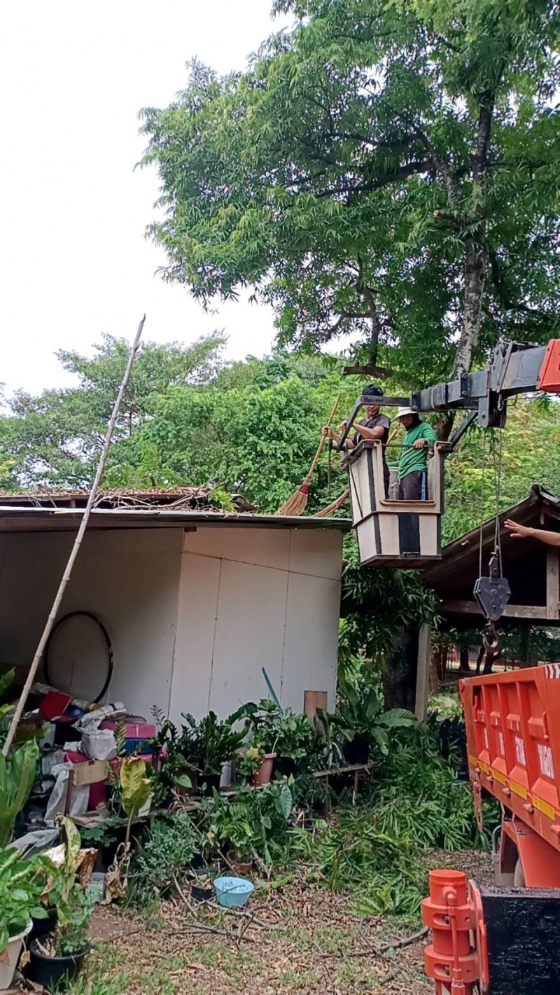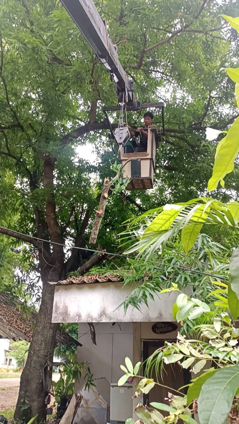 นายเทียม ทององค์ นายกองค์การบริหารส่วนตำบลหนองน้ำใส ได้มอบหมายให้ นายปรีชา ถาวรสุข ผู้ช่วยนายช่างไฟฟ้า และ นายณัฐวุฒ ณรงค์เพ็ชร คนงาน นำรถกระเช้าไฟฟ้า ลงพื้นที่ ให้บริการ ช่วยตัดกิ่งไม้ ณ บริเวณ โรงเรียนซับนกแก้ววิทยา