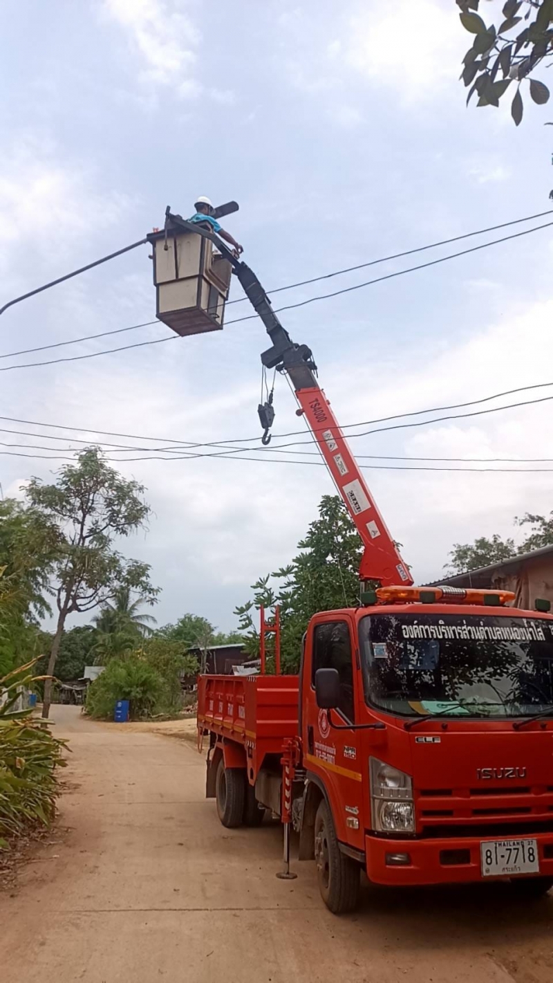 นายเทียม ทององค์ นายกองค์การบริหารส่วนตำบลหนองน้ำใส มอบหมาย นายปรีชา ถาวรสุข ผู้ช่วยนายช่างไฟฟ้า สนับสนุนรถกระเช้าออกดำเนินการช่วยเหลือชาวบ้าน หมู่ 10 บ้านเนินเหล่า ซ่อมแซมไฟรายทาง จำนวน 9 จุด