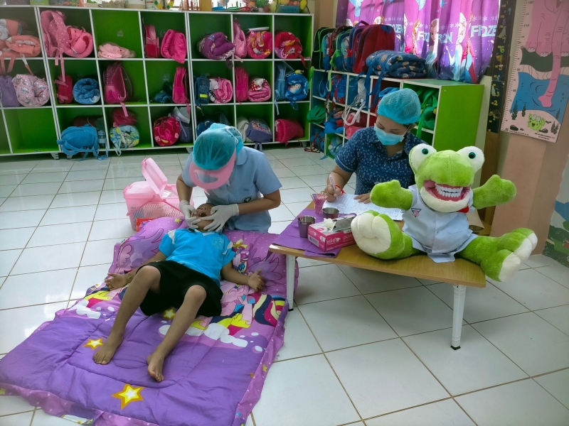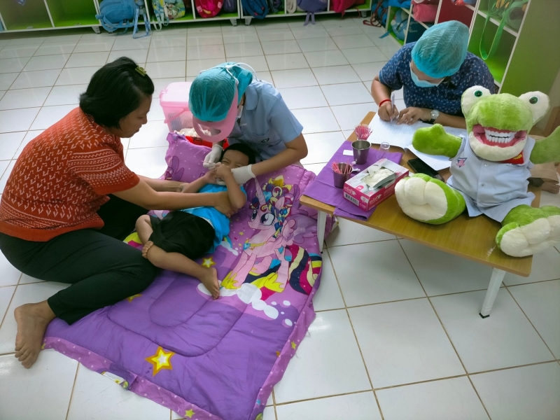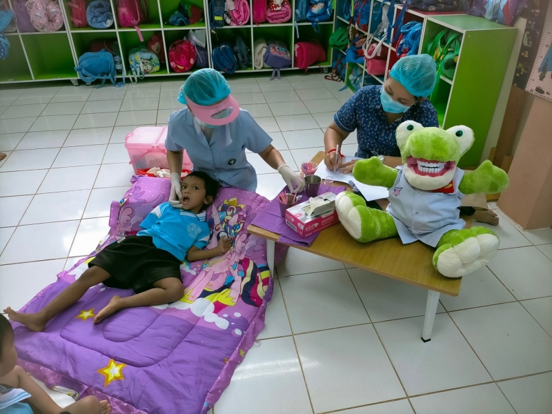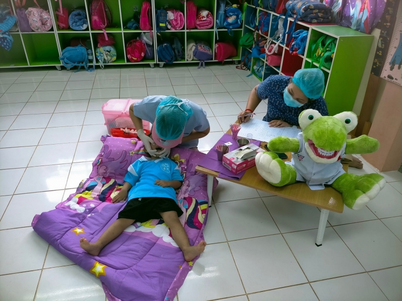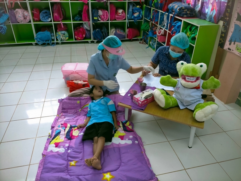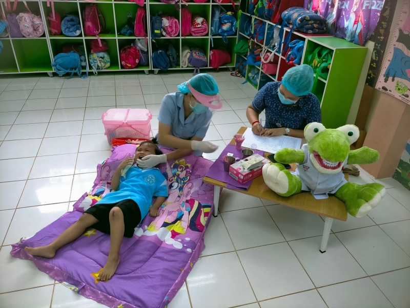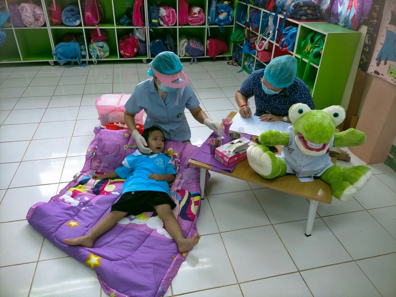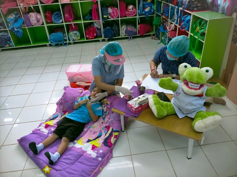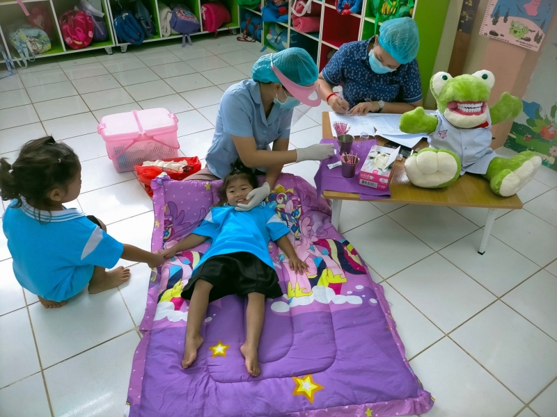 เจ้าหน้าที่ โรงพยาบาลส่งเสริมสุขภาพตำบลหนองน้ำใส ได้ลงพื้นที่ตรวจสุขภาพช่องปากและเคลือบฟลูออไรด์ให้แก่เด็กนักเรียนศูนย์พัฒนาเด็กเล็กหนองเรือ จำนวน 40 คน