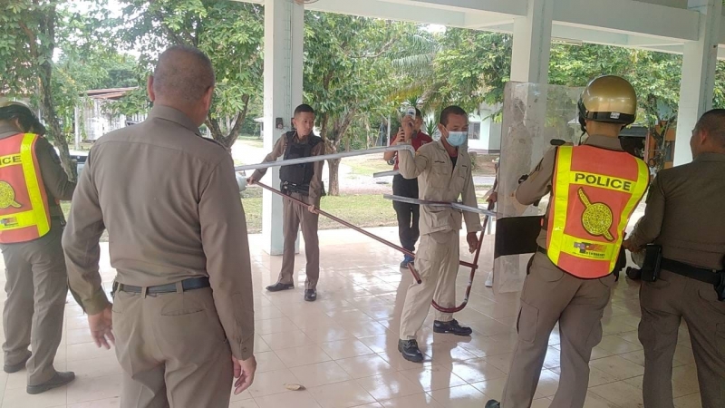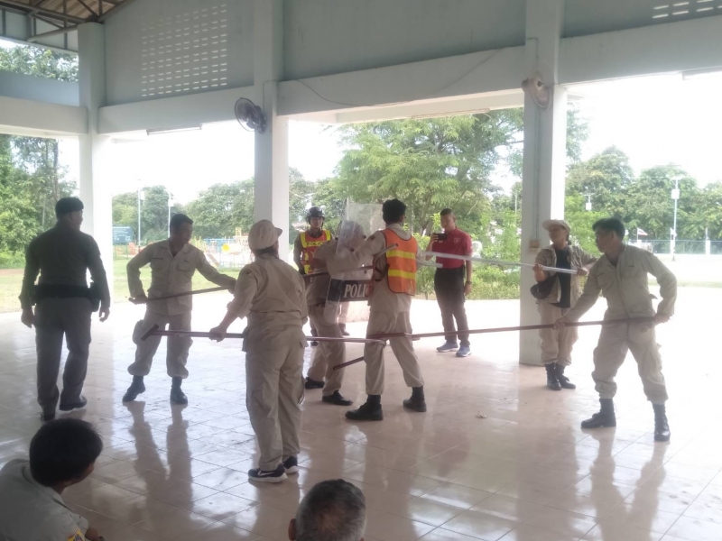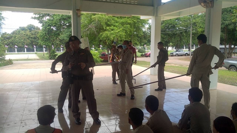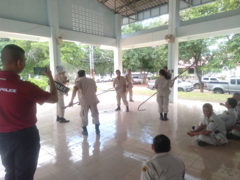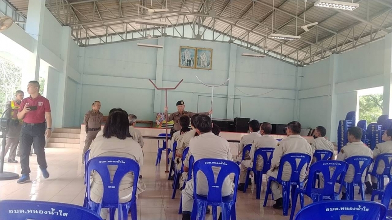 เจ้าหน้าที่ตำรวจสถานีตำรวจภูธรหนองหมากฝ้าย ฝึกเข้มยุทธวิธีใช้ไม้ง่ามให้กับ เจ้าหน้าที่อาสามัครป้องกันภัยฝ่ายพลเรือนตำบลหนองน้ำใส จำนวน 50 นาย และเจ้าหน้าที่ป้องกับรรเทาสาธารณภัย องค์การบริหารส่วนตำบลหนองนำ้ใส เพื่อระงับเหตุบุคคลคุ้มคลั่ง ณ หอประชุมองค์การบริหารส่วนตำบลหนองน้ำใส วันที่ 21 มิถุนายน ทั้งนี้เพื่อให้ผู้เข้ารับการฝึกอบรมมีทักษะ ประสบการณ์ สามารถระงับเหตุกรณีบุคคลวิกลจริต มีอาการคุ้มคลั่ง เพื่อเป็นการลดการสูญเสียต่อชีวิตและทรัพย์สินของประชาชน