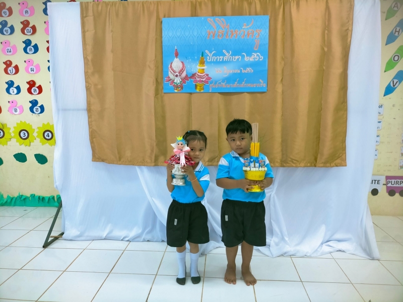 ศูนย์พัฒนาเด็กเล็กหนองเรือ จัดพิธีไหว้ครู ให้เด็กนักเรียนนำดอกไม้ ธูปเทียน ทำพิธีไหว้ครู ในวันที่ 22 มิถุนายน 2566 ณ ศูนย์พัฒนาเด็กเล็กหนองเรือ