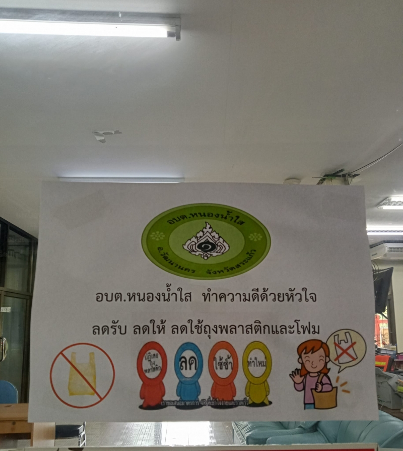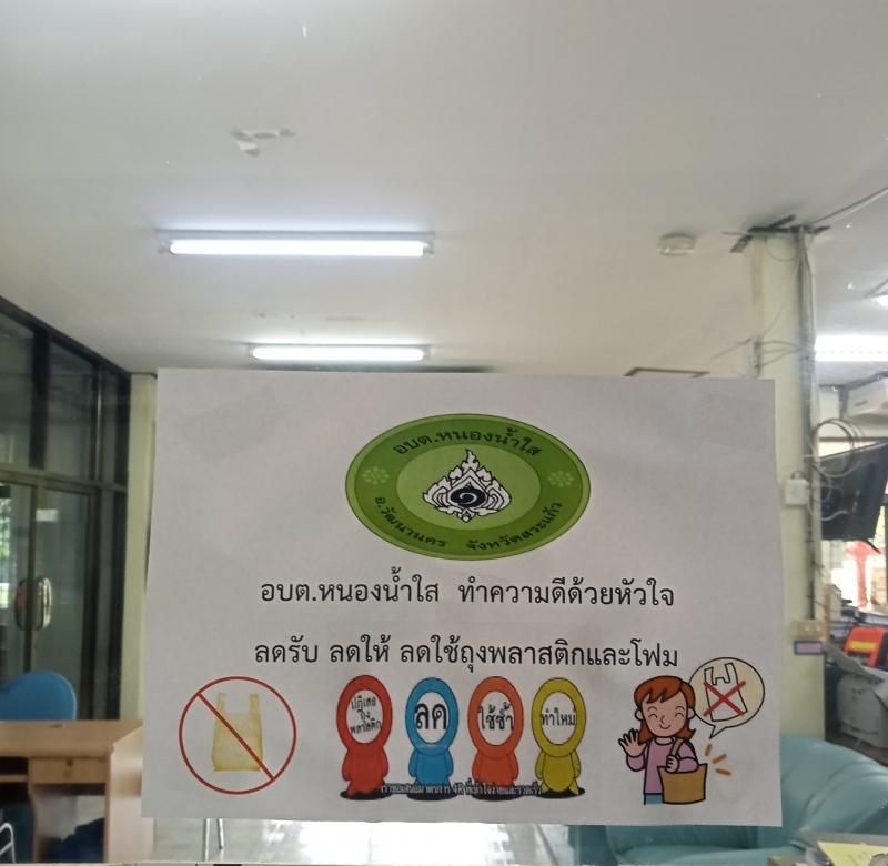 องค์การบริหารส่วนตำบลหนองน้ำใส ได้ดำเนินการจัดทำแนวทางมาตรการในการดำเนินการณรงค์การลดใช้ถุงพลาสติก และงดใช้ถุงโฟม ดังนี้