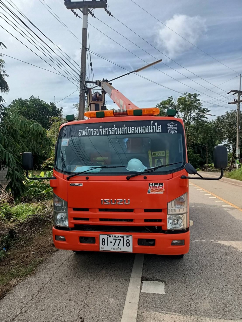 นายเทียม ทององค์ นายกองค์การบริหารส่วนตำบลหนองน้ำใส มอบหมายให้ นายปรีชา ถาวรสุข ผู้ช่วยนายช่างโยธา และ นายณัฐวุฒ ณงค์เพ็ชร คนงาน ออกดำเนินการซ่อมไฟรายทาง จำนวน 3 หมู่บ้าน