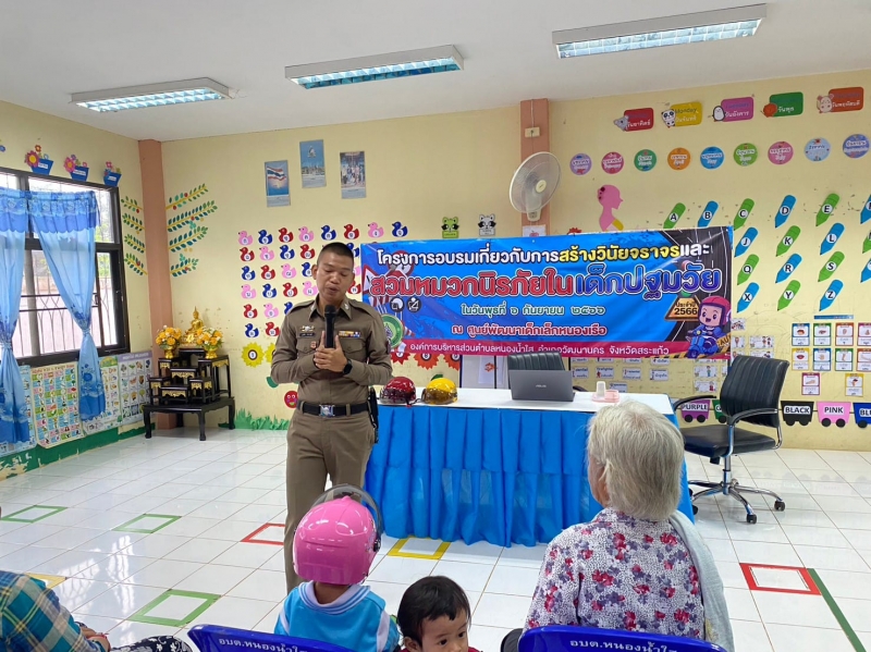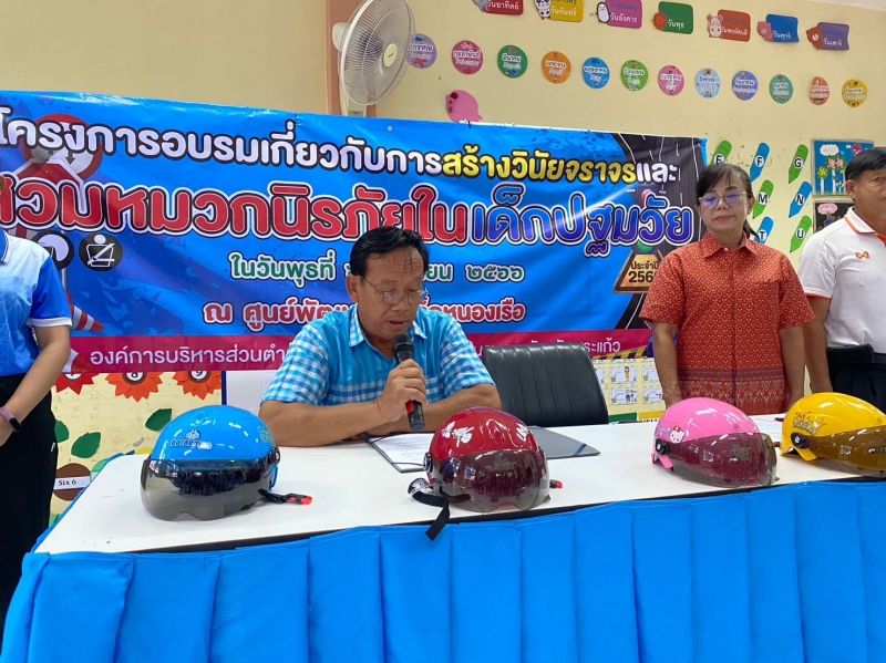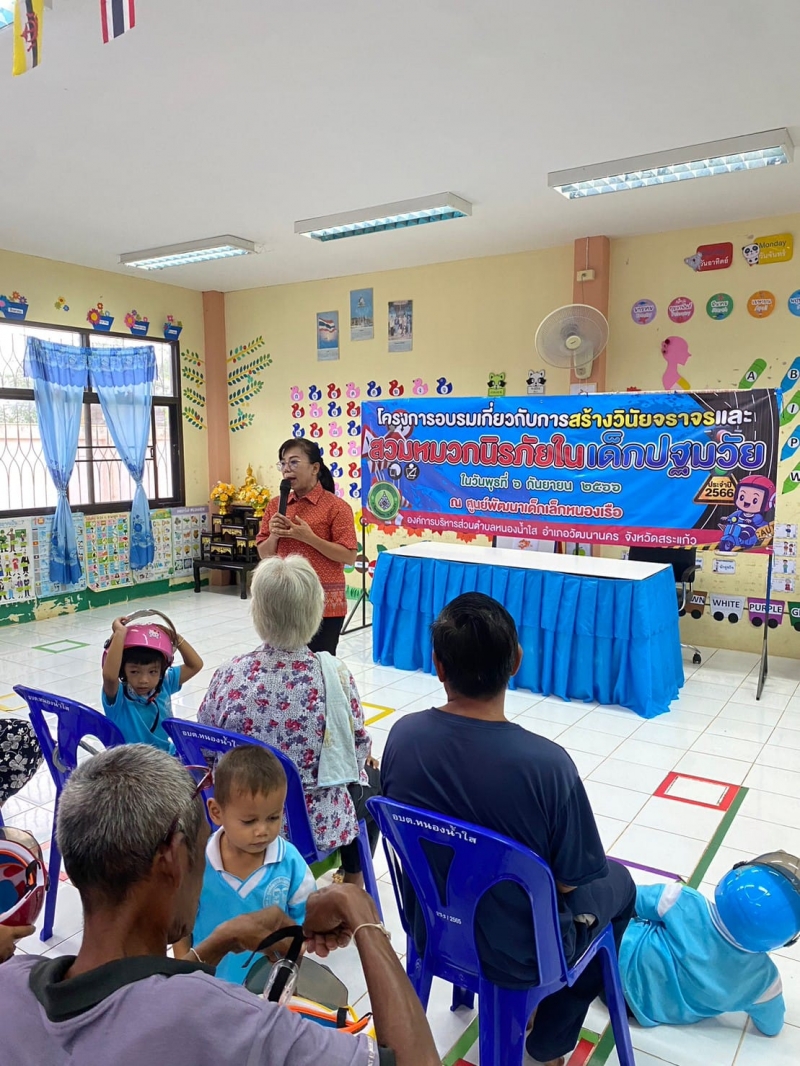 โครงการอบรมเกี่ยวกับการสร้างวินัยจราจรและสวมหมวกนิรภัยในเด็กปฐมวัย ในวันที่ 6 กันยายน 2566 เวลา 08.30 น. ณ ศูนย์พัฒนาเด็กเล็กหนองเรือ