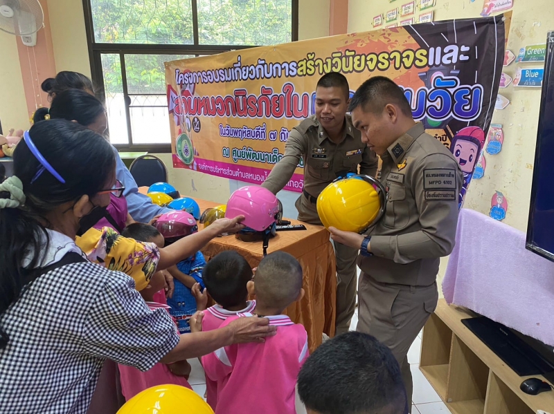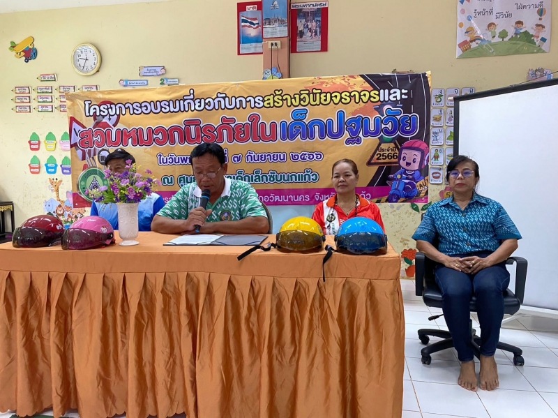 โครงการอบรมเกี่ยวกับการสร้างวินัยจราจรและสวมหมวกนิรภัยในเด็กปฐมวัย ในวันที่ 7 กันยายน 2566 ณ ศูนย์พัฒนาเด็กเล็กซับนกแก้ว