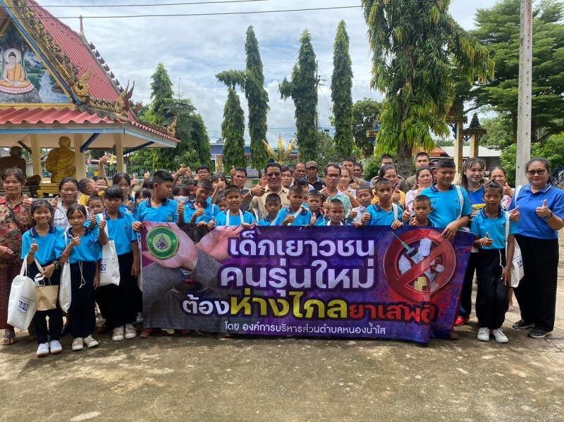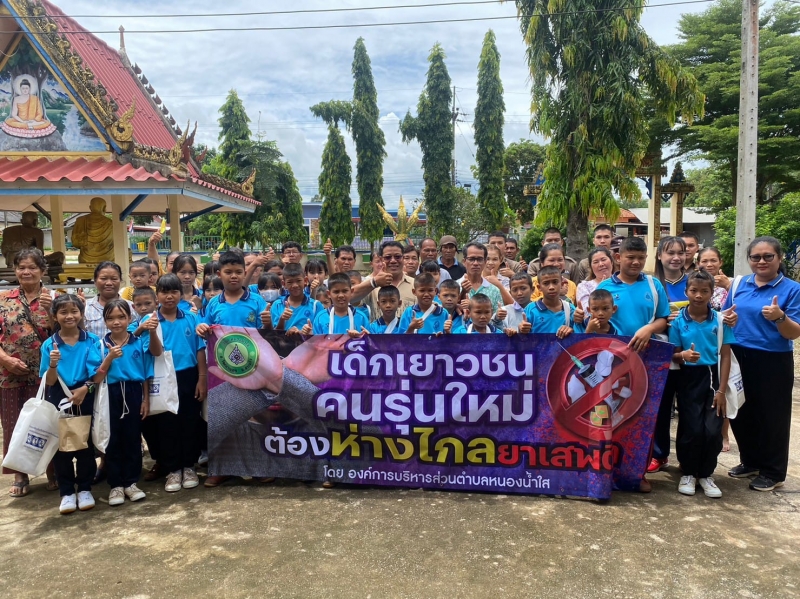 นายเทียม ทององค์ นายองค์การบริหารส่วนตำบลหนองน้ำใส พร้อมด้วย นายสิทธิโชค เอกตาแสง รองนายกองค์การบริหารส่วนตำบลหนองน้ำใส นายสุรพล ทองชื่น เลขานุการนายกฯ นางชญาชล คำเพ็ง ผู้อำนวยการกองคลังรักษาราชการแทนปลัดองค์การบริหารส่วนตำบล นางนุชรี พรมทิพย์ นักพัฒนาชุมชนชำนาญการ และเจ้าหน้าที่องค์การบริหารส่วนตำบลหนองน้ำใส ได้จัดกิจกรรมโครงการรณรงค์ป้องกันแก้ไขปัญหายาเสพติดร่วมกับสถานีตำรวจภูธรหนองหมากฝ้าย ประจำปีงบประมาณ 2566 วันที่ 13 กันยายน 2566 เวลา 08.30 น. ณ วัดบ้านเนินสะอาด หมู่ที่ 6 ตำบลหนองนำ้ใส อำเภอวัฒนานคร จังหวัดสระแก้ว โดยมีเจ้าหน้าที่ตำรวจสถานีตำรวจธูรหนองหมากฝ้ายมาอบรมให้ความรู้เกี่ยวกับภัยยาเสพติด และวิธีป้องกันยาเสพติด ให้กับเยาวชน นักเรียนโรงเรียนบ้านเนินสะอาด