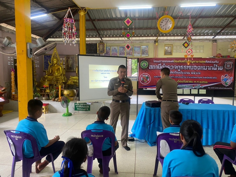 โครงการรณรงค์ป้องกันแก้ไขปัญหายาเสพติดร่วมกับสถานีตำรวจภูธรหนองหมากฝ้าย ประจำปีงบประมาณ 2566 วันที่ 13 กันยายน 2566