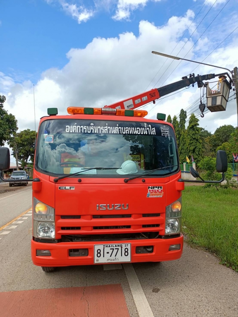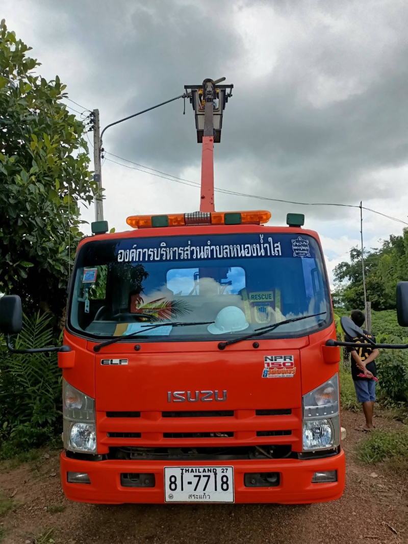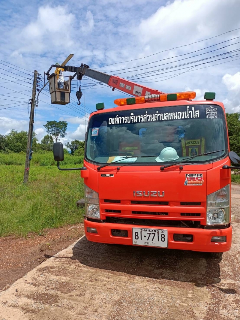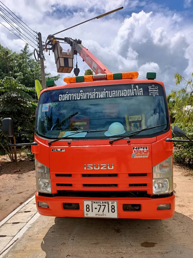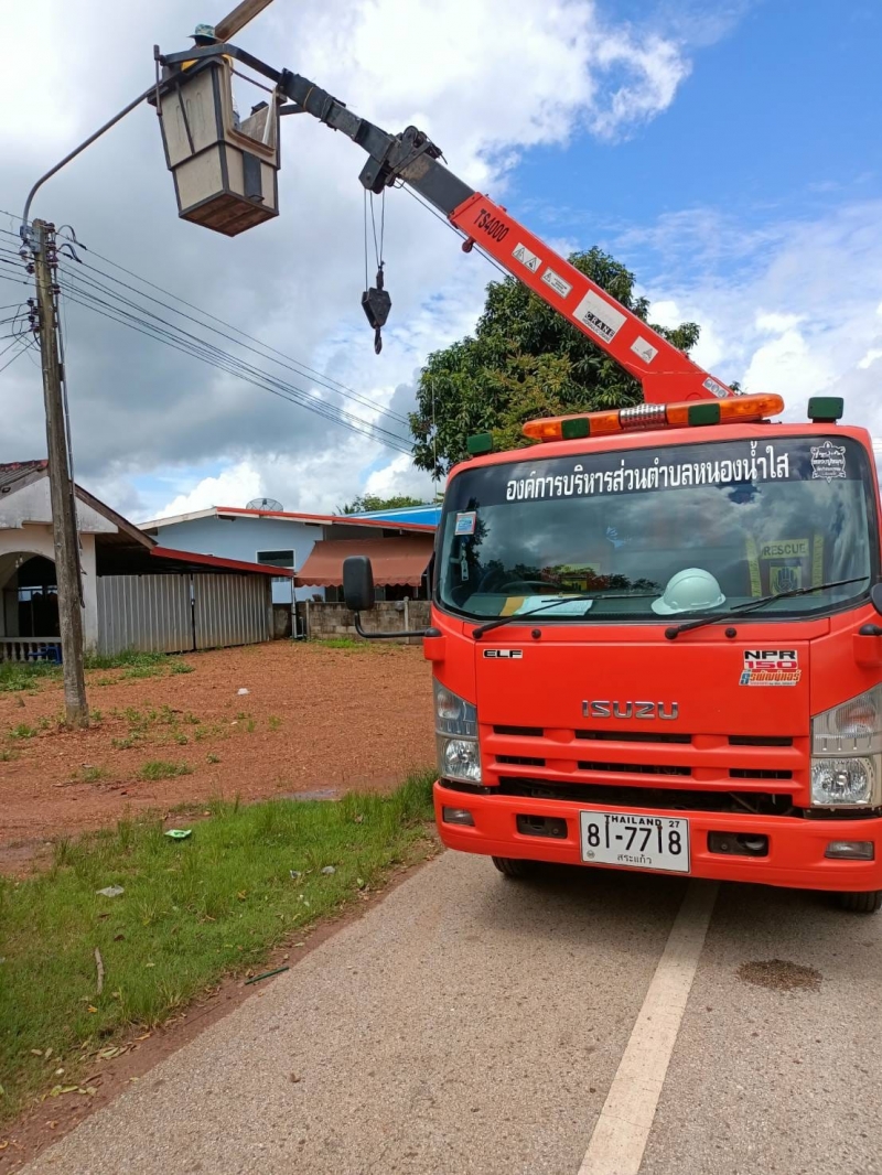 นายเทียม ทององค์ นายกองค์การบริหารส่วนตำบลหนองน้ำใส มอบหมายให้ นายปรีชา ถาวรสุข ผู้ช่วยนายช่างโยธา และ นายณัฐวุฒ ณงค์เพ็ชร คนงาน ออกดำเนินการซ่อมไฟรายทาง
