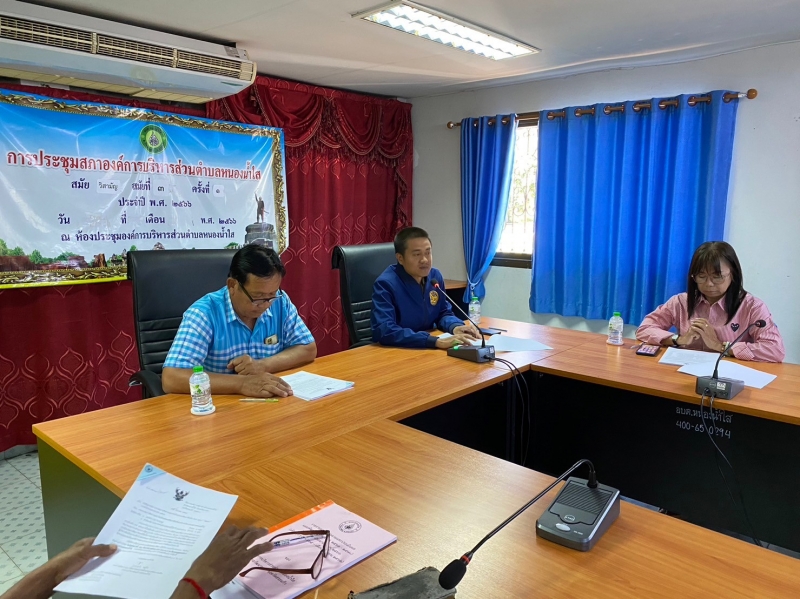 ประชุมรายงานผลการติดตามแผนพัฒนาประจำปีงบประมาณ 2566 วันที่ 19 ธันนวาคม 2566 เวลา 10.00 น. ณ ห้องประชุมองค์การบริหารส่วนตำบลหนองน้ำใส