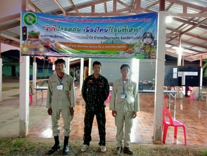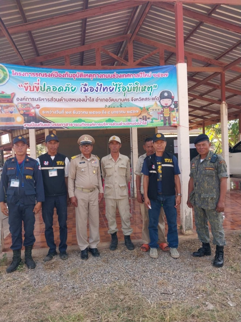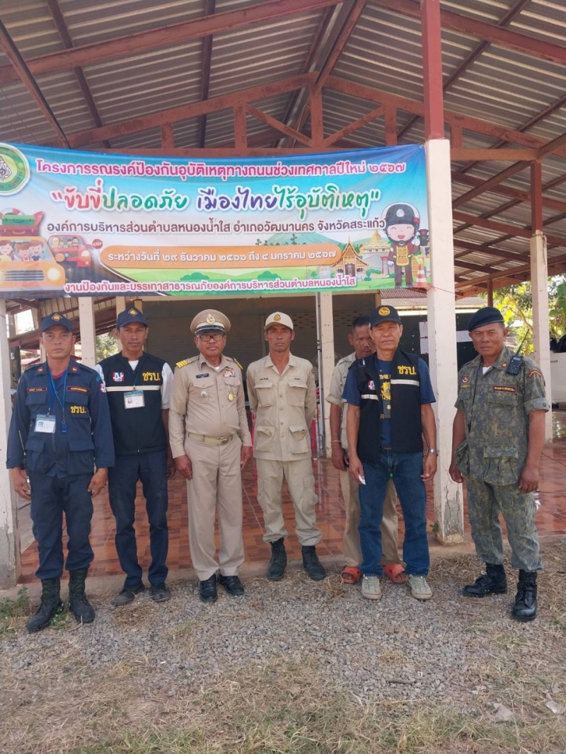 โครงการรณรงค์ป้องกันอุบัติเหตุทางถนนช่วงเทศกาลปีใหม่ 2567 ขององค์การบริหารส่วนตำบลหนองน้ำใส ระหว่างวันที่ 29 ธันวาคม 2566 ถึงวันที่ 4 มกราคม 2567 ณ ป้อมยามหมู่บ้านหมู่ที่ 8 บ้านทางโค้ง