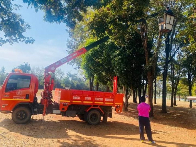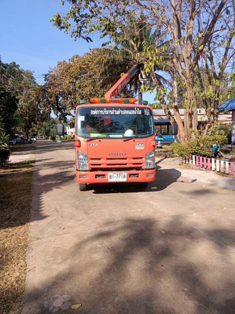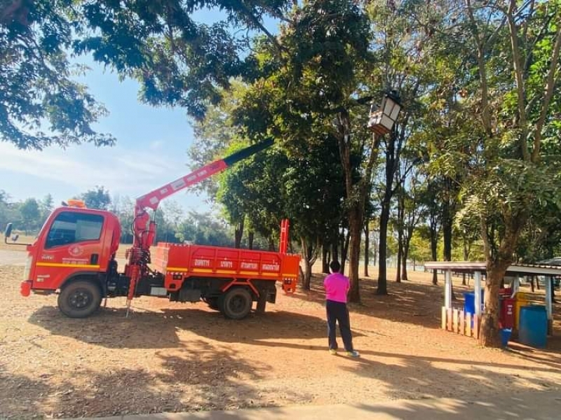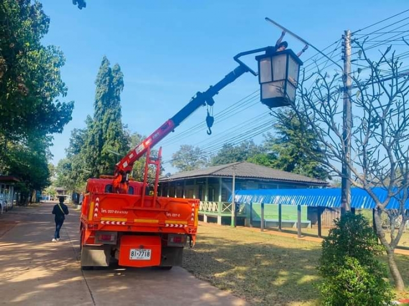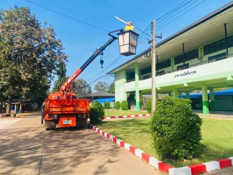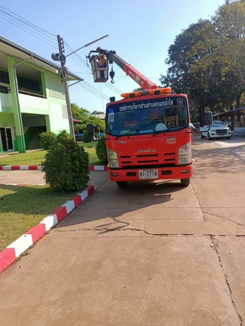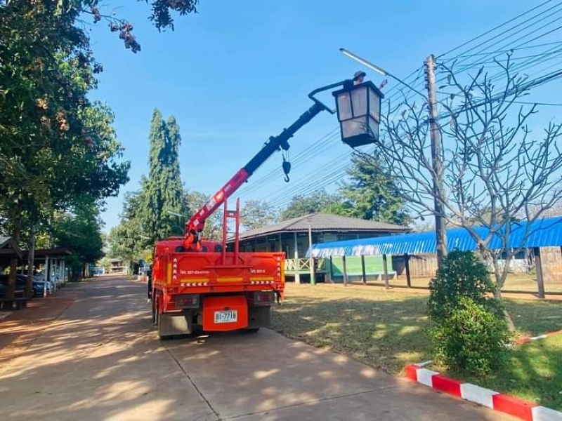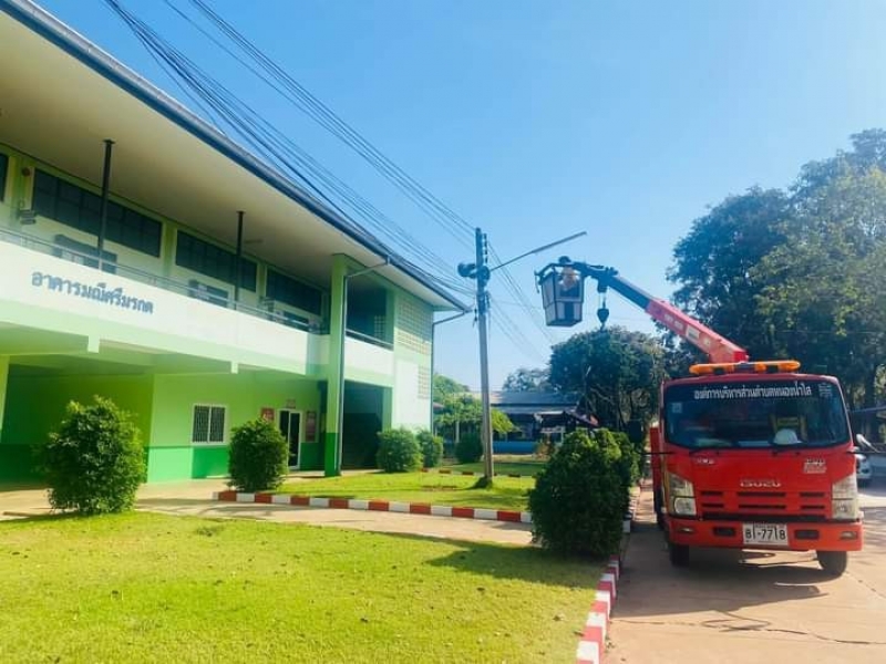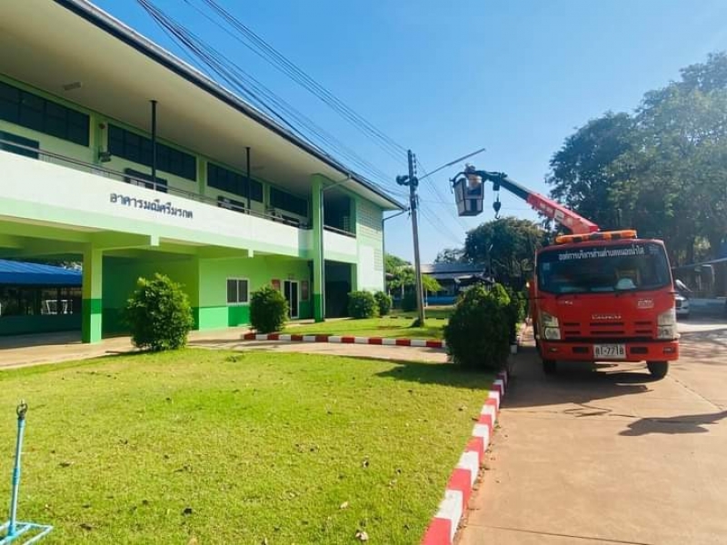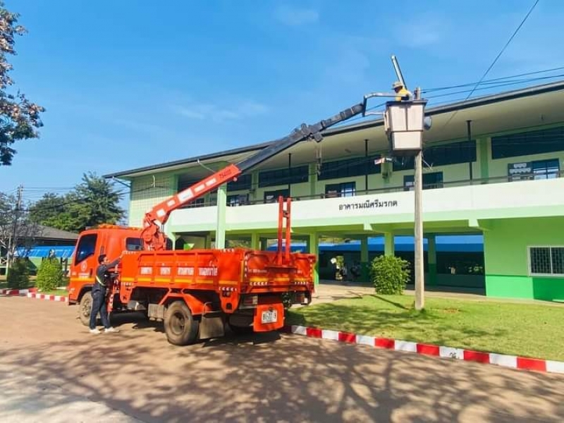 ผู้ช่วยนายช่างไฟฟ้าพร้อมรถกระเช้าไฟฟ้าลงพื้นที่ซ่อมไฟฟ้าส่องสว่าง ณ โรงเรียนบ้านซับนกแก้ว วันที่ 8 มกราคม 2567