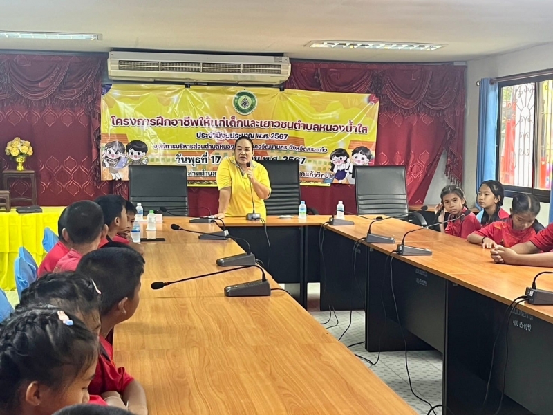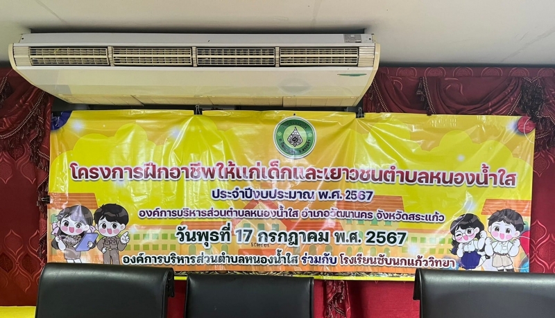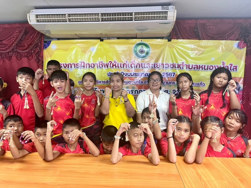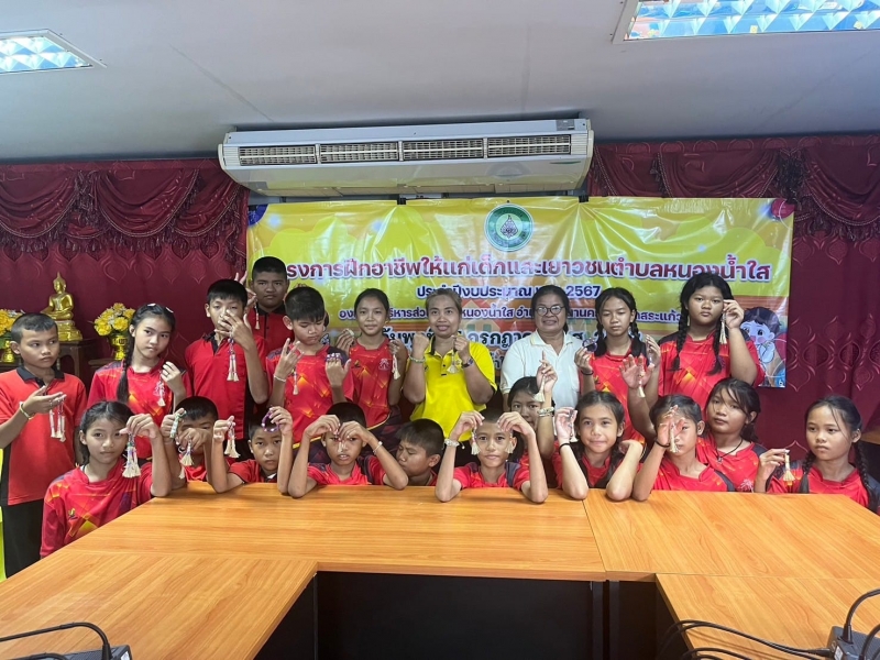 นายเทียม ทององค์ นายกองค์การบริหารส่วนตำบลหนองน้ำใส ได้เปิดโครงการฝึกอาชีพให้แก่เด็กและเยาวชนตำบลหนองน้ำใส ประจำปี 2567โดยมี ผู้อำนวยการโรงเรียนบ้านซับนกแก้ว และคณะคุณครูโรงเรียนบ้านซับนกแก้ว ส่งเด็กนักเรียนบ้านซับนกแก้ว มาฝึกอบรมการสร้างอาชีพ ฝึกทำพวงกุณแจ โดยโครงการเป็นการฝึกนักเรียนให้เรียนรู้และ ฝึกสร้างอาชีพ เพื่อเพิ่มรายได้ให้กับเยาวชน