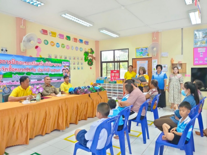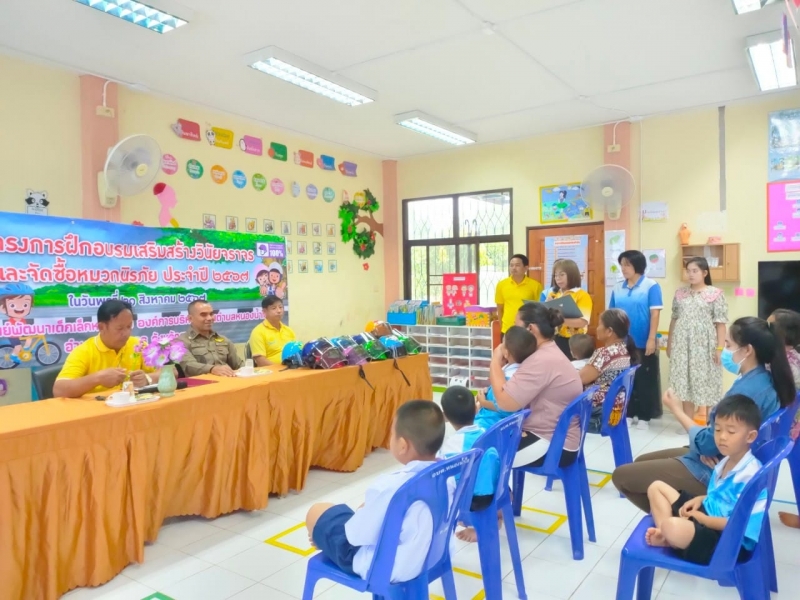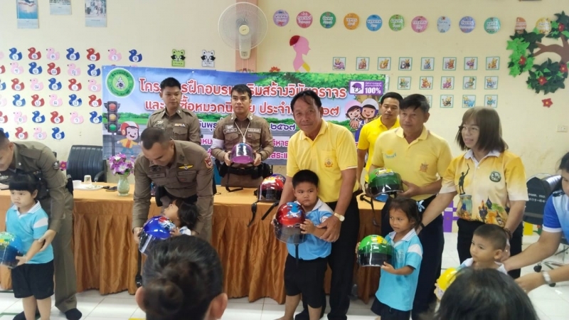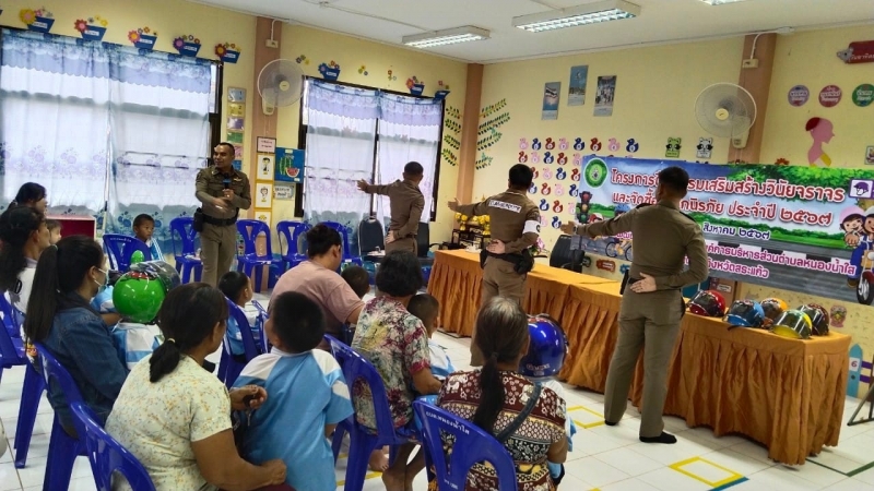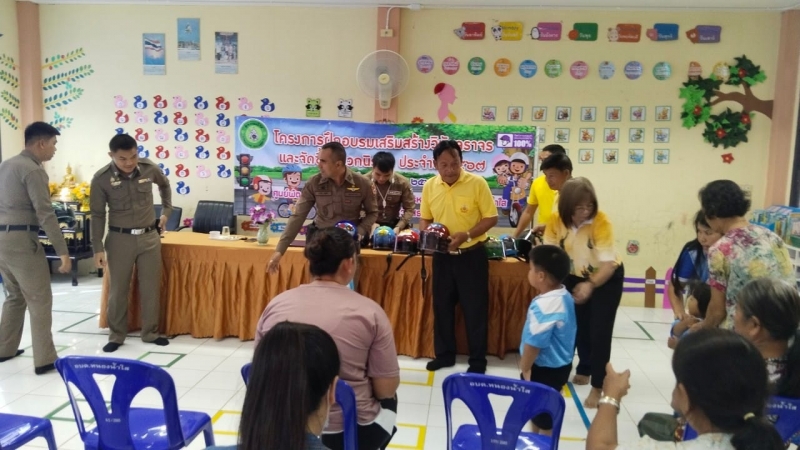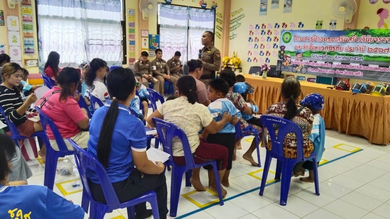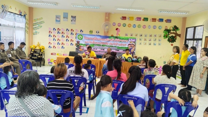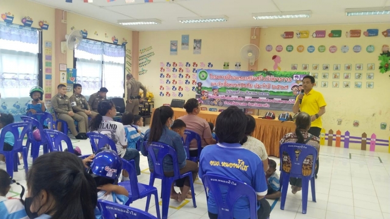 โครงการฝึกอบรมเสริมสร้างวินัยจราจรและจัดซื้อหมวกนิรภัยประจำปี 2567 วันที่ 21 สิงหาคม 2567 ณ ศูนย์พัฒนาเด็กเล็กหนองเรือ