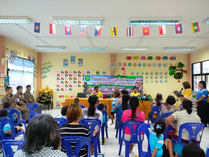 นายเทียม ทององค์ นายกองค์การบริหารส่วนตำบลหนองน้ำใส พร้อมด้วย นายสุรพล ทองชื่น รองนายกอบต. และ นางชญาขล คำเพ็ง ผู้อำนวยการกองคลัง รักษาราชการแทนปลัดองค์การบริหารส่วนตำบลหนองน้ำใส ร่วมเปิดกิจกรรมโครงการฝึกอบรมเสริมสร้างวินัยจราจรและจัดซื้อหมวกนิรภัย ประจำปี 2567 ณ ศูนย์พัฒนาเด็กเล็กหนองเรือ หมู่ที่ 2 บ้านหนองน้ำใส อำเภอวัฒนานคร จังหวัดสระแก้ว โดยกิจกรรมนี้ ได้เกียรติจาก เจ้าหน้าที่สถานีตำรวจภูธรหนองหมากฝ้าย มาเป็นวิทยากร ให้ความรู้ เรื่องวินัยจราจร และมีการแจกหมวกนิรภัย ให้เด็กนักเรียนของศูนย์พัฒนาเด็กเล็กหนองเรือ เพื่อป้องกันอุบัติเหตุ ขณะตอนนั่งรถจักยานยนต์มาโรงเรียน และได้รับความร่วมมือจากผู้ปกครองของเด็กนักเรียนที่มาร่วมกิจกรรมในครั้งนี้