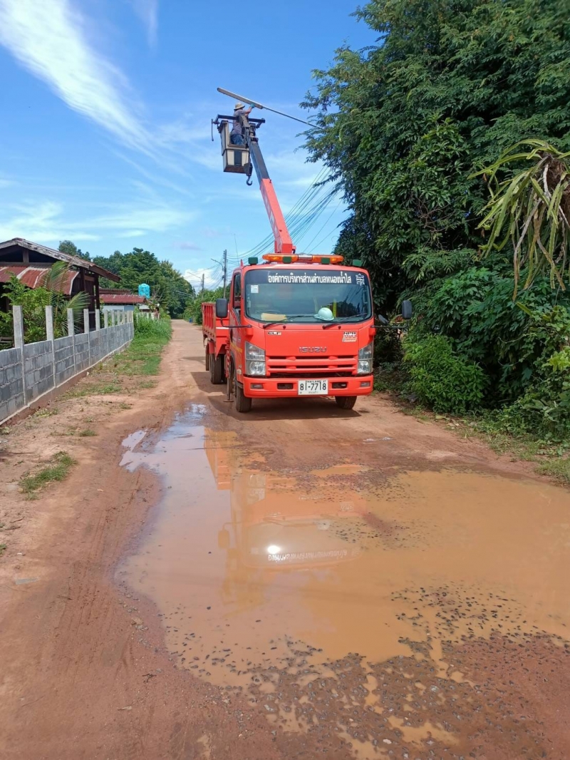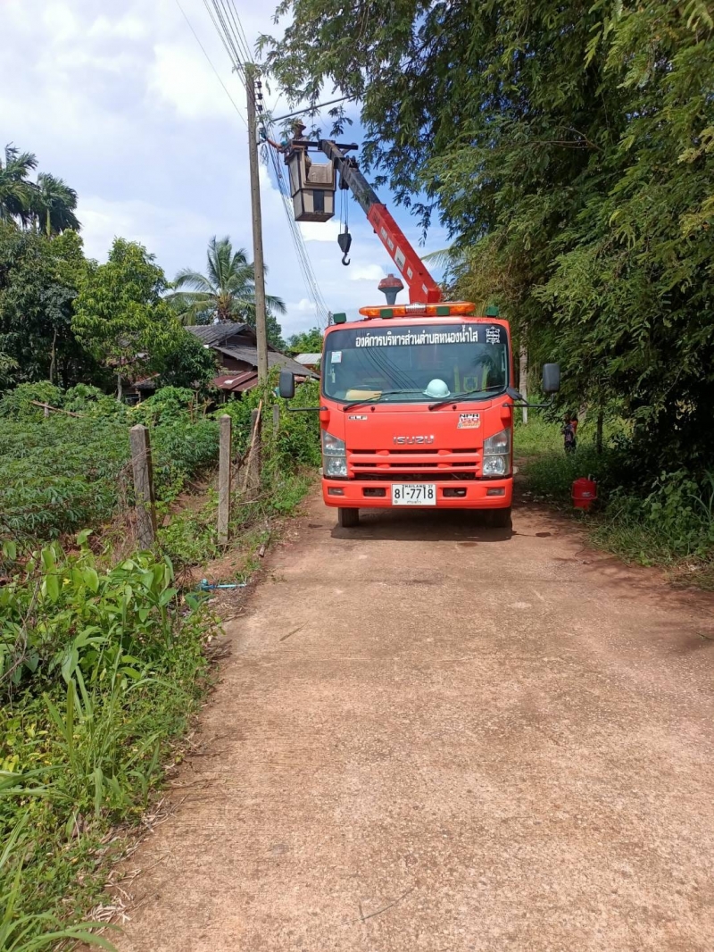 นายเทียม ทององค์ นายกองค์การบริหารส่วนตำบลหนองน้ำใส มอบหมายให้ นายปรีชา ถาวรสุข ผู้ช่วยนายช่างโยธา และ นายณัฐวุฒ ณงค์เพ็ชร คนงาน ออกดำเนินการซ่อมไฟรายทาง หมู่ที่ 7 บ้านซับน้ำบุ้น ตำบลหนองนำ้ใส อำเภอวัฒนานคร จังหวัดสระแก้ว จำนวน 3 จุด
