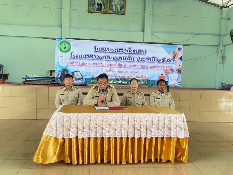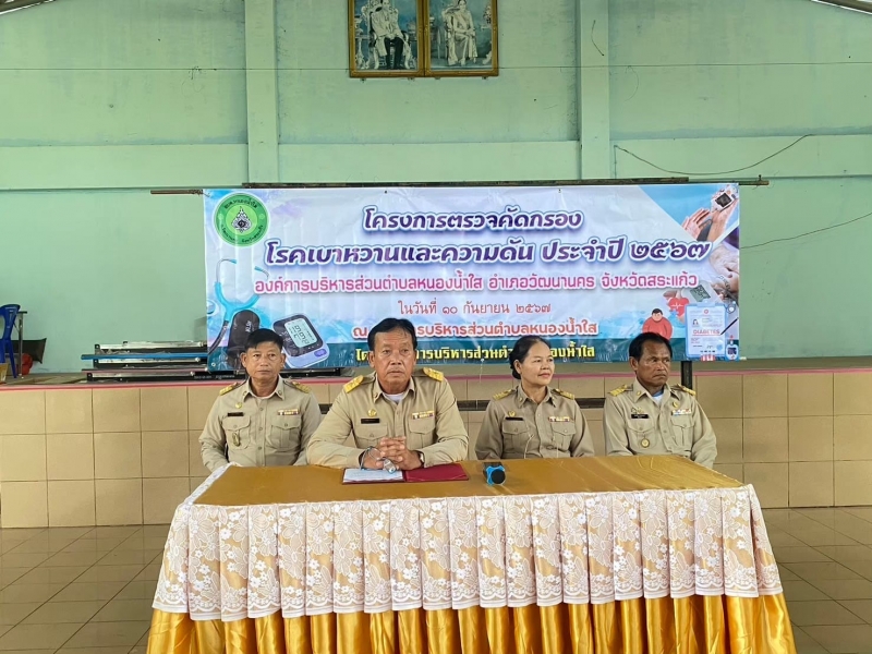 นายเทียม ทององค์ นายกองค์การบริหารส่วนตำบลหนองน้ำใส ได้เป็นประธานเปิดโครงการตรวจคัดกรองเบาหวาน และความดัน ประจำปีงบประมาณ 2567 โดยมี นายสุรพล ทองชื่น รองนายกอบต. นางเทียม เฉลียวกิจ รองนายกอบต. นายสมคิด สายทอง เลขานุการนายกอบต. นางชญาชล คำเพ็ง ผู้อำนวยการกองคลัง รักษาราชการแทนปลัดองค์การบริหารส่วนตำบลหนองน้ำใส โดยได้รับความร่วมมือจาก ผู้อำนวยการโรงพยาบาลส่งเสริมสุขภาพตำบลซับนกแก้ว ผู้อำนวยการโรงพยาบาลส่งเสริมสุขภาพตำบลหนองน้ำใส จนท.อสม.ประจำตำบลหนองน้ำใส ที่ช่วยอำนวยความสะดวก และตรวจโรคเบาหวาน และความดันให้กับผู้มีภาวะเสี่ยงต่อการเป็นโรคเบาหวานและความดัน แก่ประชาชนตำบลหนองน้ำใส ณ หอประชุมองค์การบริหารส่วนตำบลหนองน้ำใส