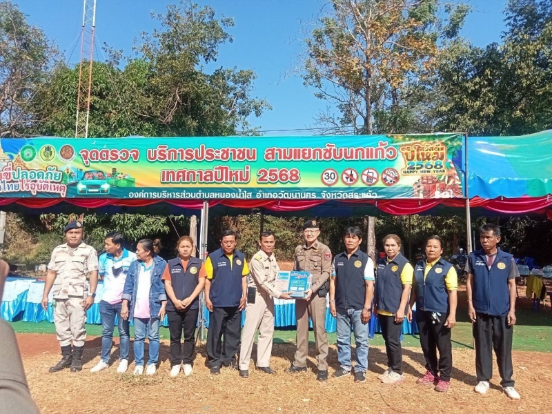 วันที่ 28 ธันวาคม 2567 เวลา 12.00 น. วันนี้ ได้มีคณะตรวจเยี่ยมด่านสามแยกซับนกแก้ว จากท่านภูมิวัชร์ อุดมทรัพย์ รองผู้ว่าราชการจังหวัดพร้อมด้วยคณะหัวหน้าส่วนราชการ จังหวัดสระแก้ว นายจักรกฤษณ์ ธนะนพรัตน์นายอำเภอวัฒนานคร หัวหน้าส่วนราชการอำเภอวัฒนานคร นายอนุสรณ์ จำปราศรี จนท.พณจ.สระแก้ว พร้อมทั้งอำนวยพรเนื่องในวาระดิถีขึ้นปีใหม่ 2568 และให้กำลังใจกับคณะเจ้าหน้าที่ปฏิบัติหน้าที่จุดตรวจจุดบริการประชาชน ณ สามแยกซับนกแก้ว