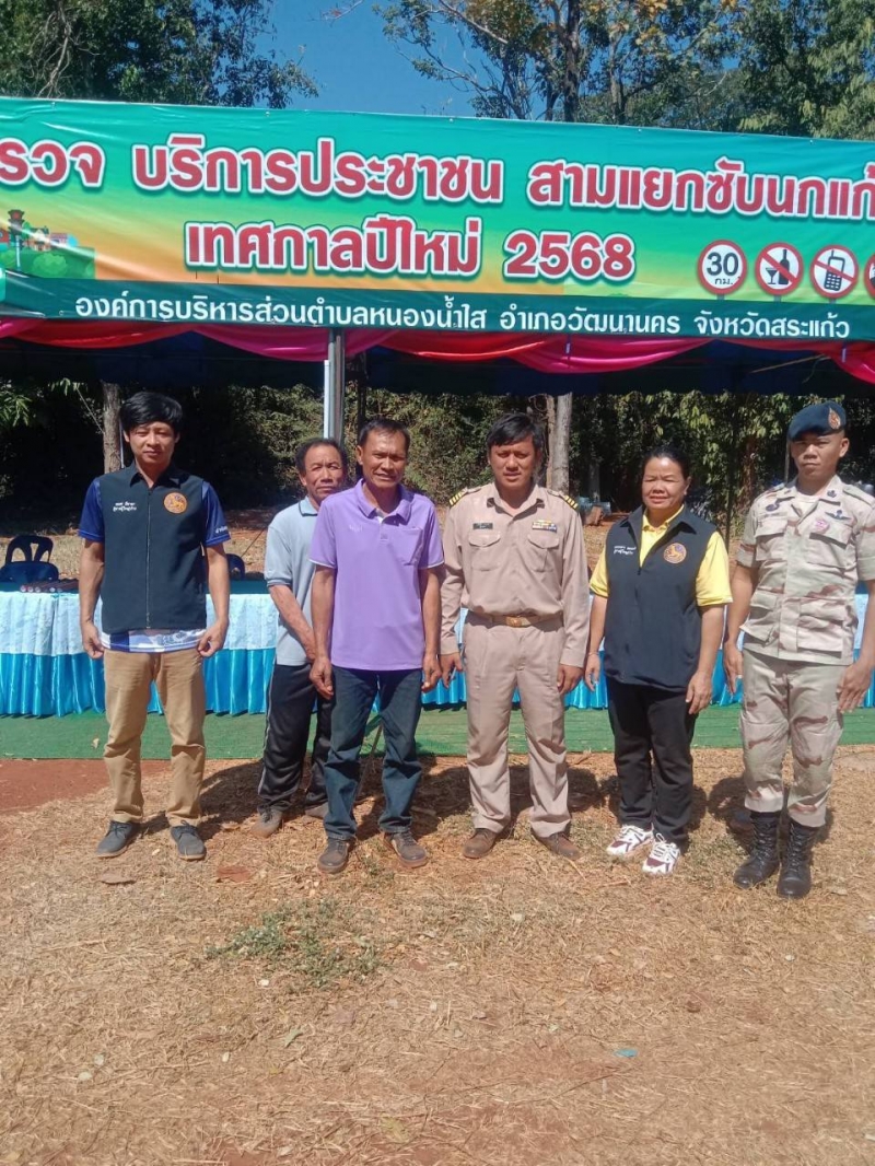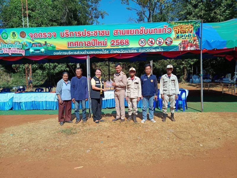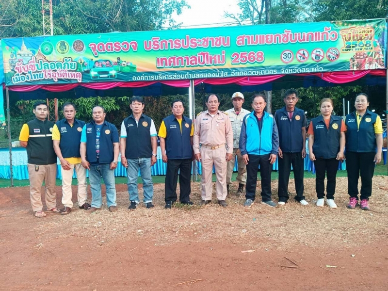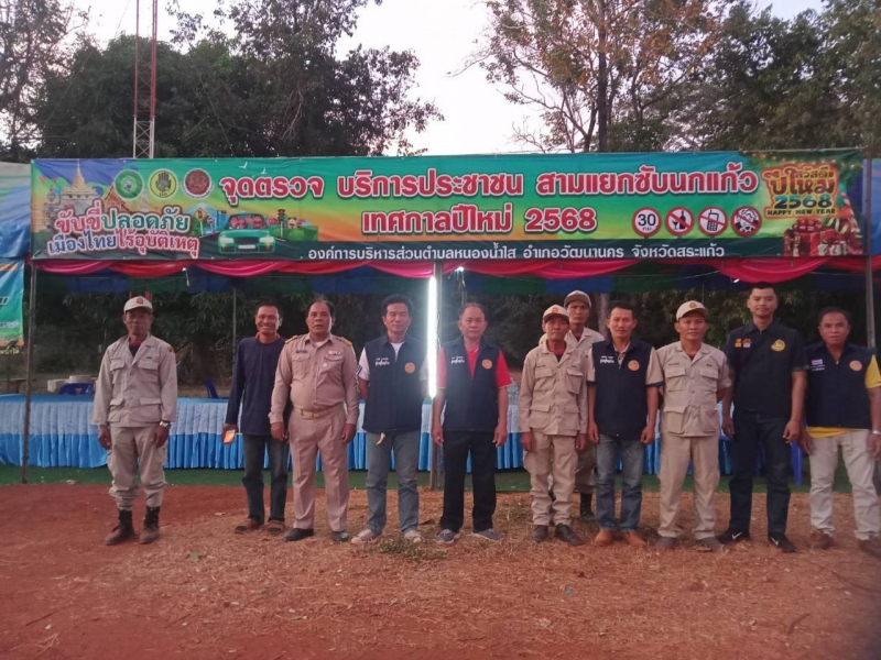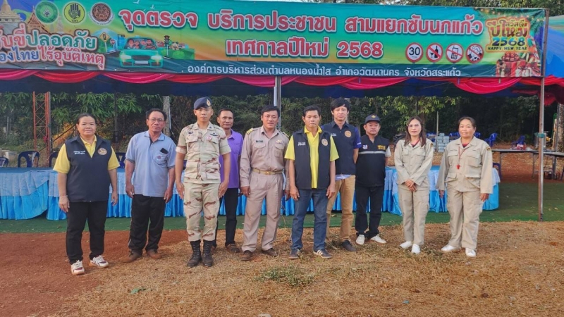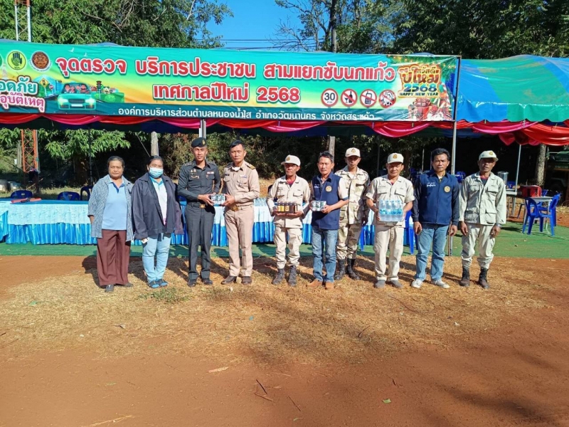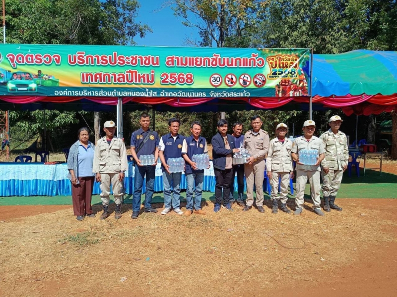 นายเทียม ทององค์ นายกการบริหารส่วนตำบลหนองน้ำใส ได้เข้าตรวจเยี่ยมและมาให้กำลังใจ และมอบเครื่องดื่ม ให้แก่เจ้าหน้าที่ปฏิบัติหน้าที่ประจำจุดตรวจบริการประชาชน ช่วงเทศกาลปีใหม่ ระหว่างวันที่ 27 ธันวาคม 2567 - 2 มกราคม 2568