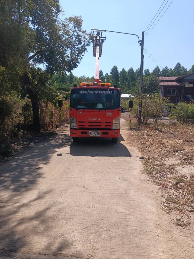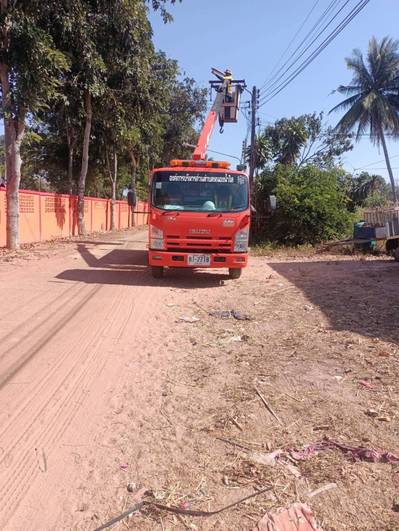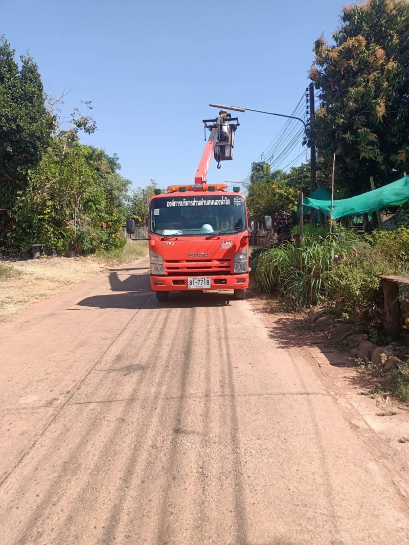 นายเทียม ทององค์ นายกองค์การบริหารส่วนตำบลหนองน้ำใส มอบหมายให้ นายปรีชา ถาวรสุข ผู้ช่วยนายช่างโยธา และนายณัฐวุฒ ณงค์เพ็ชร คนงาน ออกดำเนินการซ่อมไฟรายทาง