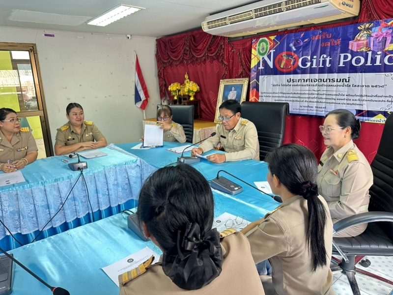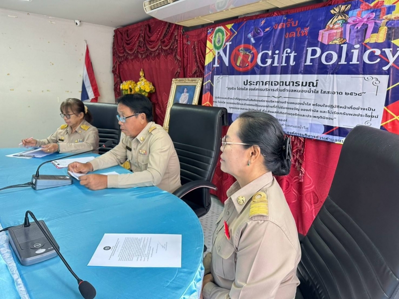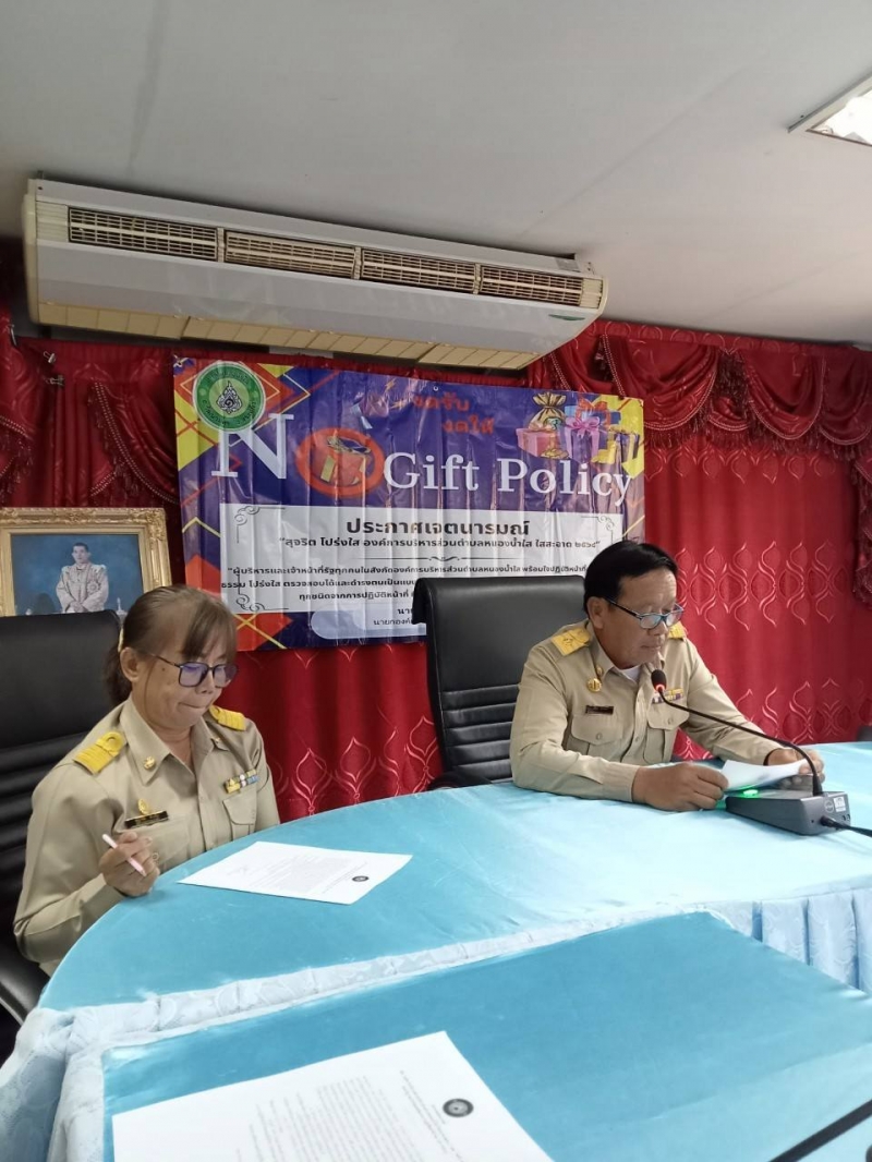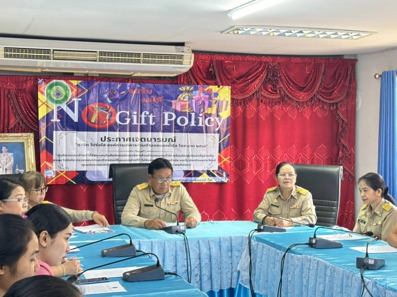 " เรื่อง สุจริต โปร่งใส องค์การบริหารส่วนตำบลหนองน้ำใส ใสสะอาด" ประจำปี พ.ศ. 2568 และ งดรับ งดให้" ของขวัญของกำนัลจากการปฏิบัติหน้าที่ (์No Gift Policy) ให้แก่พนักงานส่วนตำบลทุกคน ได้รับทราบและถือปฏิบัติ ณ ห้องประชุมองค์การบริหารส่วนตำบลหนองน้ำใส