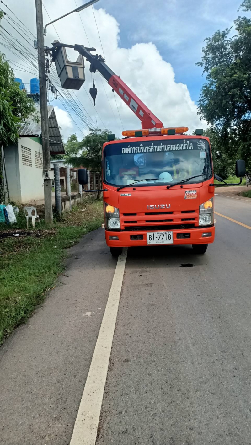 นายเทียม ทององค์ นายกองค์การบริหารส่วนตำบลหนองน้ำใส มอบหมายให้ นายปรีชา ถาวรสุข ผู้ช่วยนายช่างโยธา และนายณัฐวุฒ ณงค์เพ็ชร คนงาน ออกดำเนินการซ่อมไฟรายทาง