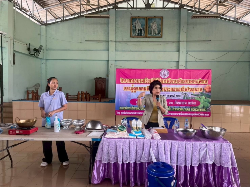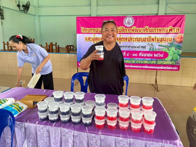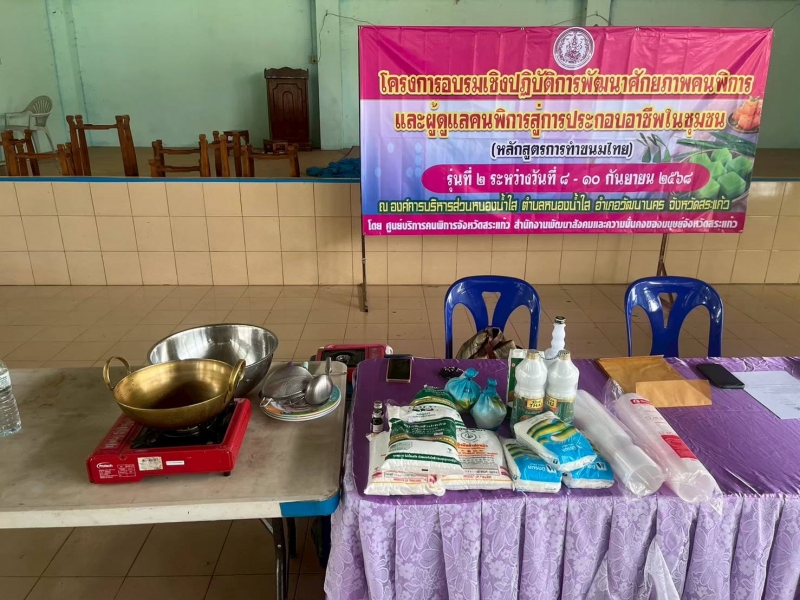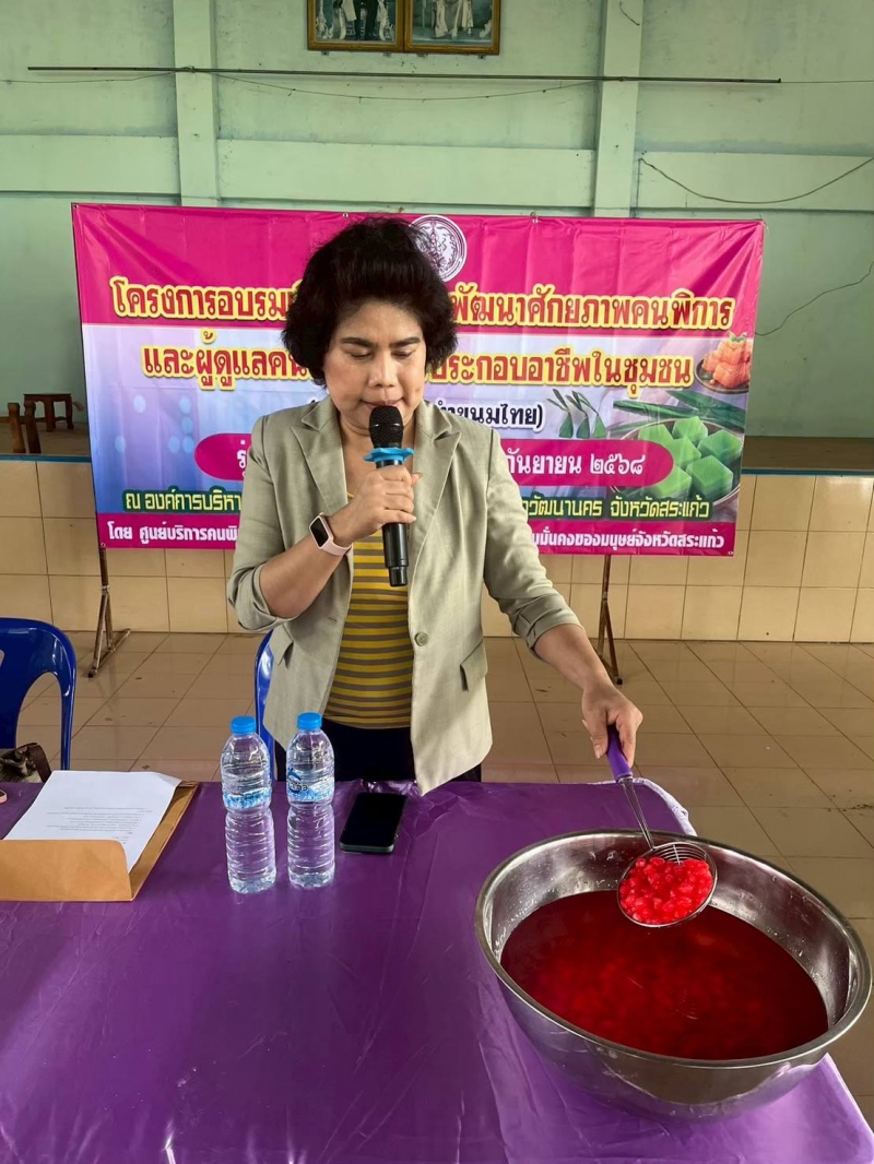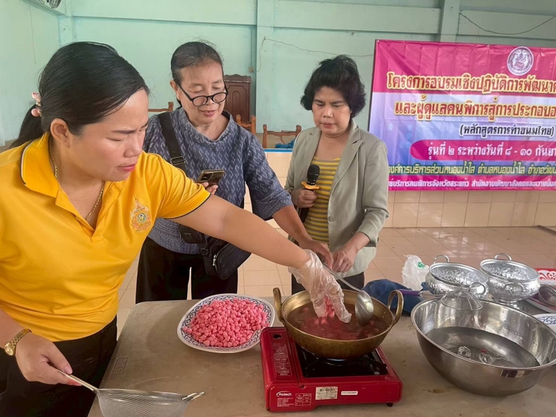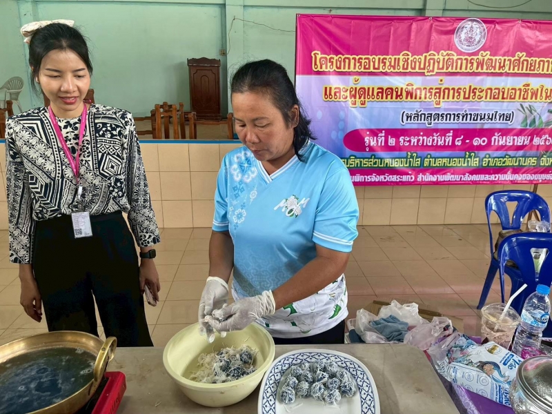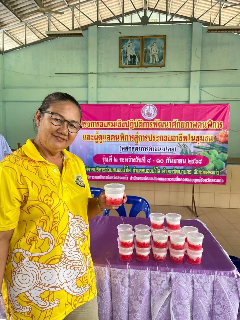 โครงการอบรมเชิงปฏิบัติการพัฒนาศักยภาพคนพิการและผู้พิการสู่การประกอบอาชีพในชุมชน (หลักสูตรทำขนมไทย) รุ่นที่ 2 ระหว่างวันที่ 8 - 10 กันยายน 2568 ณ หอประชุมองค์การบริหารส่วนตำบลหนองน้ำใส เป็นส่งเสริมการสร้างอาชีพ ให้กับผู้พิการ และผู้ดูแลผู้พิการ ในการทำขนมไทย เพื่อสามารถต่อยอดการสร้างรายได้ในอนาคต