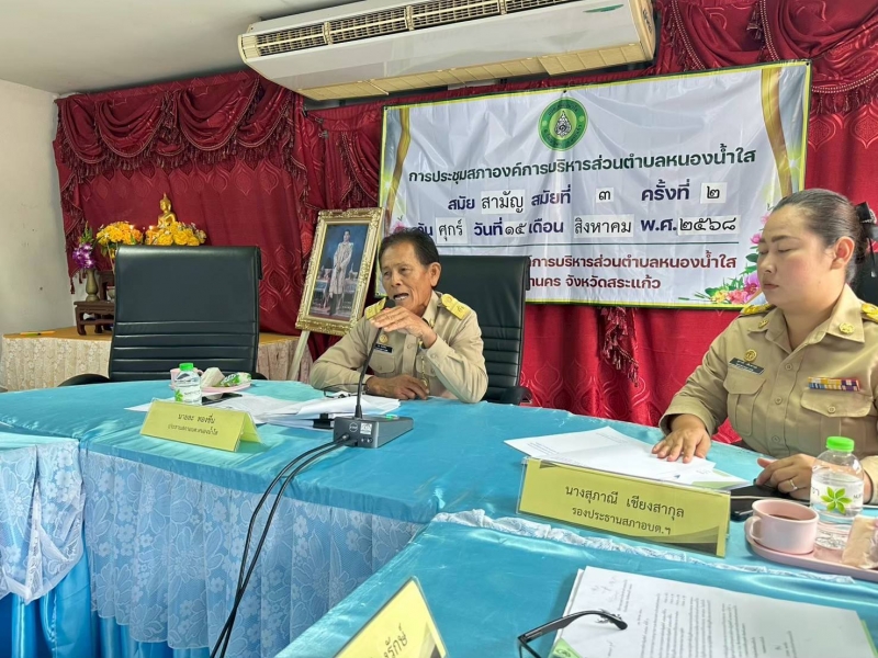 นายละ ทองชื่น ประธานสภาองค์การบริหารส่วนตำบลหนองน้ำใส ได้เปิดการประชุุม สภาองค์การบริหารส่วนตำบลหนองน้ำใส สมัยสามัญ สมัยที่ 3 ครั้งที่ 2 /2568 วันที่ศุกร์ ที่ 15 สิงหาคม 2568 ณ ห้องประชุมองค์การบริหารส่วนตำบลหนองน้ำใส