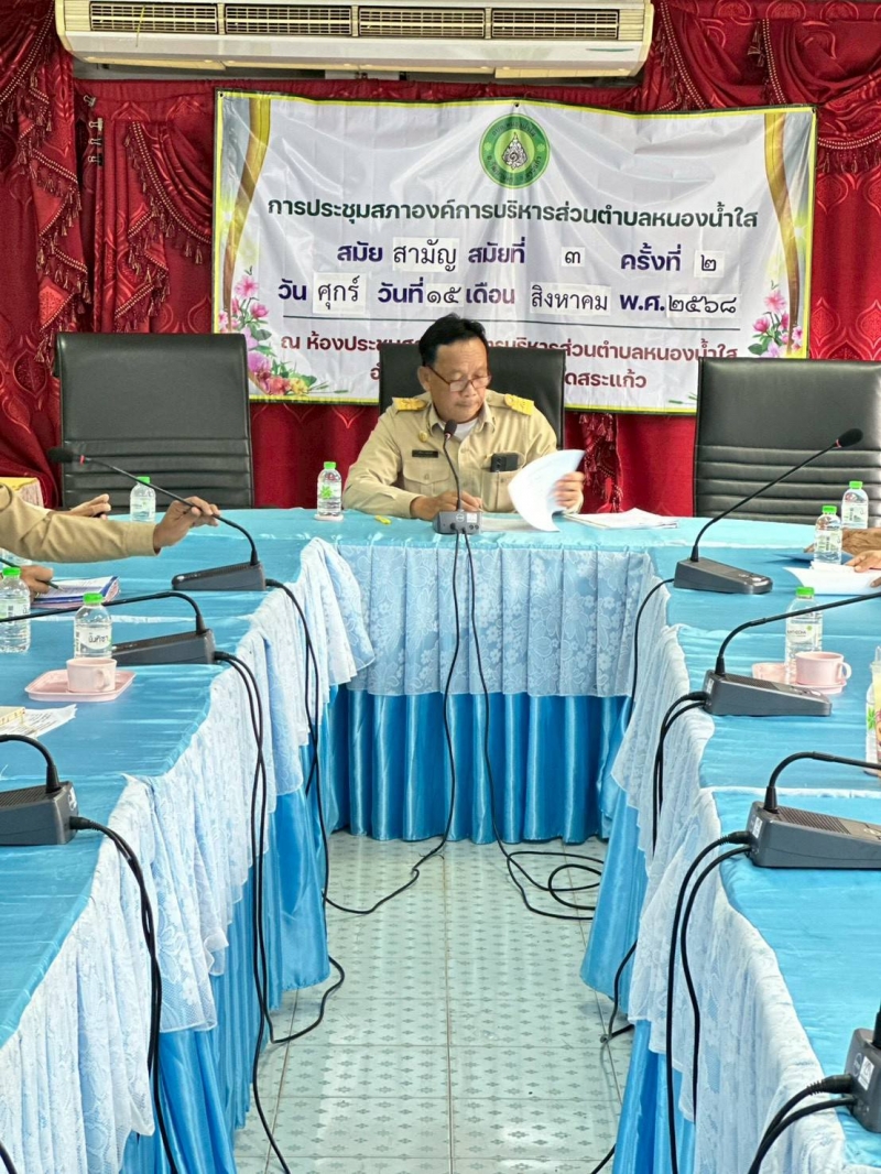 นายเทียม ทององค์ นายกองค์การบริหารส่วนตำบลหนองน้ำใส เป็นประธานเปิดประชุม คณะกรรมการพัฒนาองค์การบริหารส่วนตำบลหนองน้ำใส เพื่อพิจารณาร่างแผนดำเนินงานองค์การบริหารส่วนตำบลหนองน้ำใส ประจำปีงบประมาณ 2568