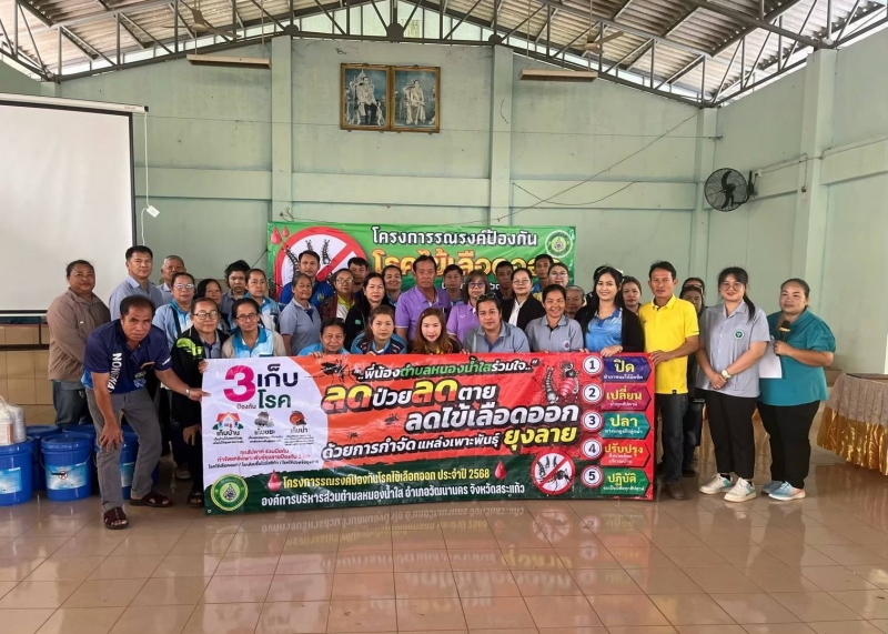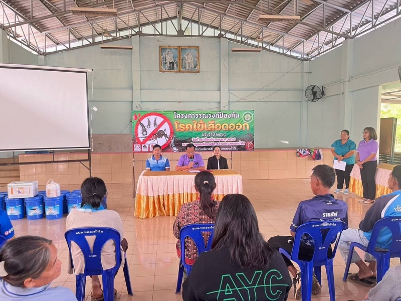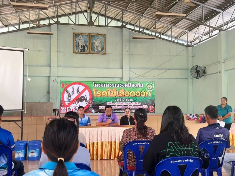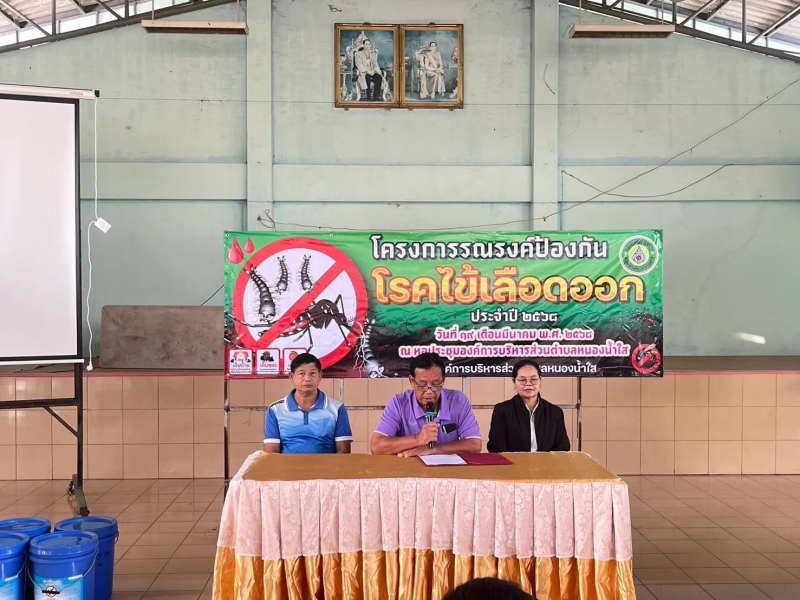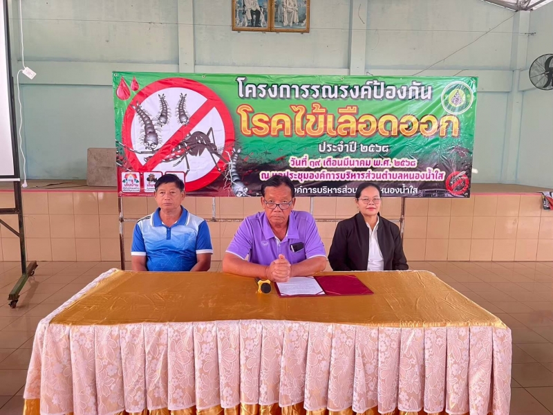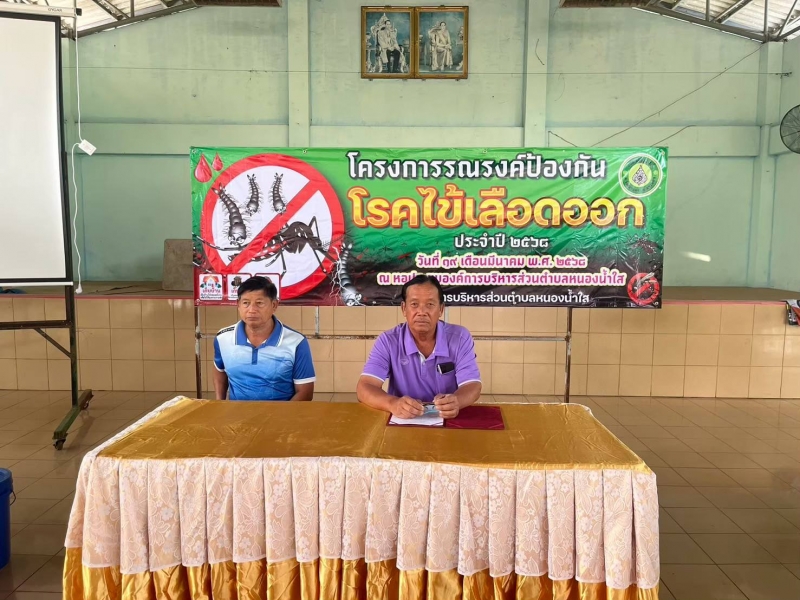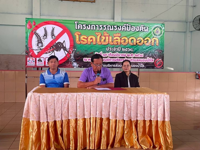 นายเทียม ทององค์ นายกองค์การบริหารส่วนตำบลหนองน้ำใส เป็นประธานเปิดโครงการรณรงค์ป้องกันโรคไข้เลือดออก ประจำปี 2568 พร้อมด้วย คณะผู้บริหาร พนักงานเจ้าหน้าที่อบต.หนองน้ำใส เจ้าหน้าที่สาธารสุข และอสม.ตำบลหนองน้ำใส โดยมีกิจกรรมให้ความรู้จากผู้อำนวยการโรงพยาบาลส่งเสริมสุขภาพตำบลบ้านซับนกแก้ว และกิจกรรมการสนับสนุนทรายอะเบทกำจัดลูกน้ำ ให้แก่อาสาสมัครสาธารณสุขประจำหมู่บ้านตำบลหนองน้ำใส ทุกหมู่บ้าน เพื่อใช้ในการรณรงค์ต้านภัยไข้เลือดออกให้แก่ประชาชน