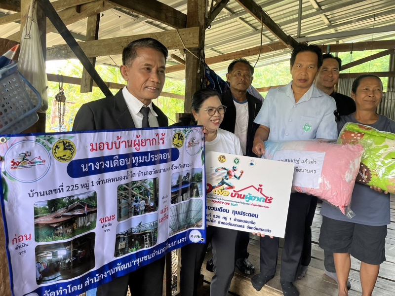 นายสุรเชษฐ์ แก้วคำ นายอำเภอวัฒนานคร พร้อมด้วย หัวหน้าส่วนราชการ ปลัดอำเภอ นายเทียม ทององค์ นายกองค์การบริหารส่วนตำบลหนองน้ำใส คณะผู้บริหารอบต.หนองน้ำใส ผู้ใหญ่บ้านหมู่ที่ 1 บ้านหนองเรือ ผู้ช่วยผู้ใหญ่บ้านหมู่ที่ 1 ลงพื้นที่มอบบ้านผู้ยากไร้ ตามโครงการวิ่งเพื่อบ้านผู้ยากไร้อำเภอวัฒนานคร โดยการซ่อมแซมบ้านผู้ยากไร้ นางวงเดือน ทุมประดอน หมู่ที่ 1 บ้านหนองเรือ ตำบลหนองน้ำใส อำเภอวัฒนานคร จังหวัดสระแก้ว (ซ่อมแซมบ้าน) และมีการมอบถุงยังชีพ เพื่อใช้ในชีวิตต่อไป ขอบคุณกิจกรรมดีๆ ที่ท่านนายอำเภอวัฒนานคร ส่งมอบให้ผู้ยากไร้ตำบลหนองน้ำใส ค่ะ