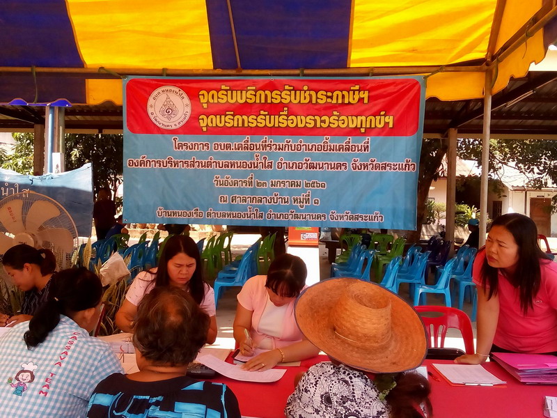 เก็บตก ภาพกิจกรรม การเก็บภาษีนอกพื้นที่่ ในโครงการ อบต.เคลือนที่่ ร่วมกับอำเภอยิ้มเคลื่อนที่่่ ในวันที่่่ 23 มกราคม 2561 เวลา 13.00 น. ณ ศาลากลางบ้านหมู่ที่่ 1 บ้านหนองเรือ ตำบลหนองน้ำใส อำเภอวัฒนคร จังหว้ดสระแก้ว โดยการนำของ นางชญาชล คำเพ็ง ผู้อำนวยการกองคลัง และเจ้าหน้าที่่่กองคลัง และเจ้าหน้าที่่สำนักปลัด ได้ลงพื้นที่่ให้บริการเก็บภาษีนอกพื้นที่่ในครั้งนี้ |