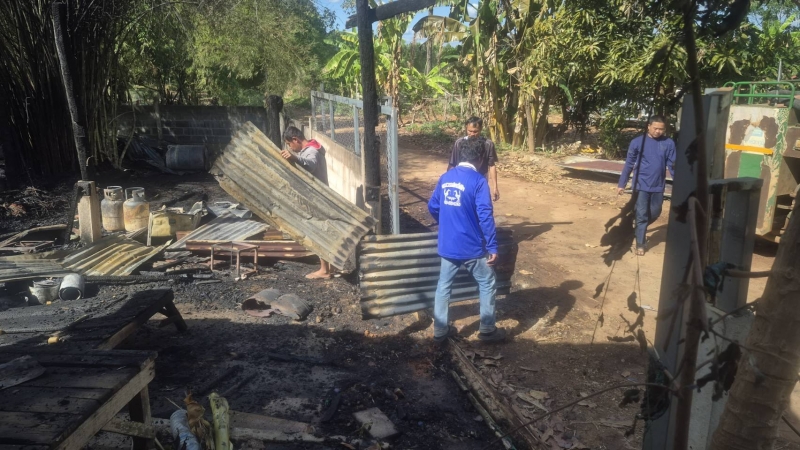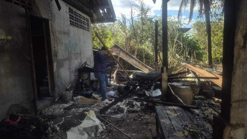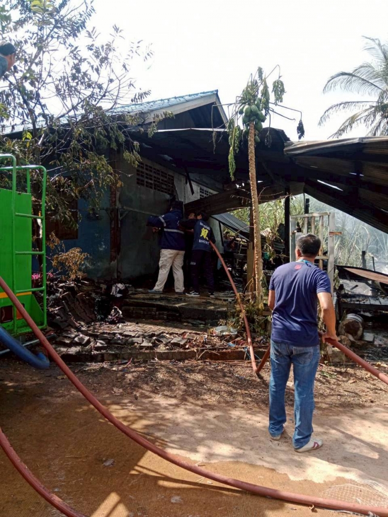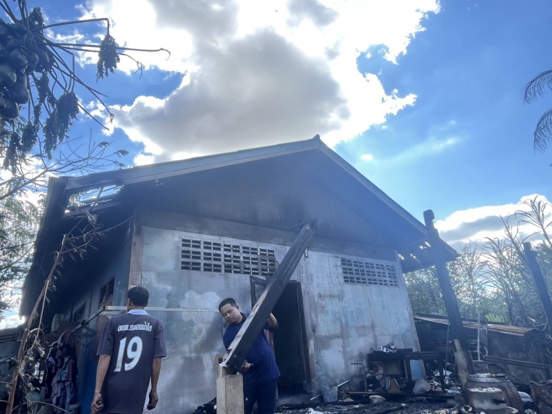 ตรวจสอบเบื้องต้น บ้านเสียหายเป็นบางส่วน ไม่มีผู้ได้รับบาดเจ็บ และเจ้าหน้าที่ จะได้ให้ความช่วยเหลือบ้านผู้ถูกเพลิงไหม้ต่อไป