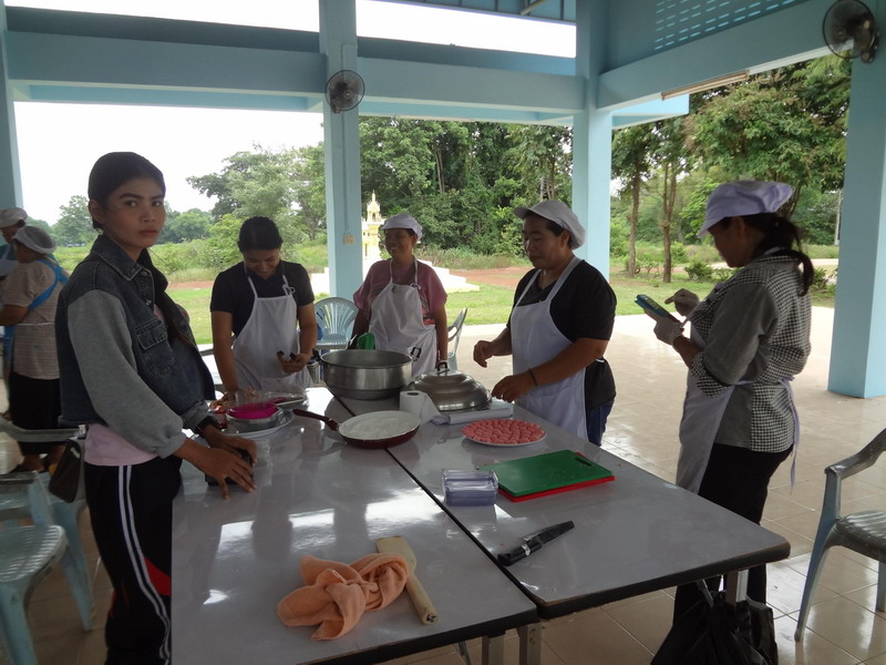 9 กรกฎาคม 2561 จนท.ของสำนักงานพัฒนาฝีมือแรงงานจังหวัดสระแก้ว ได้มาให้ความรู้และสอนการทำขนมไทย ให้กับผู้มีบัตรสวัสดิการแห่งรัฐ ที่ยื่นความประสงค์ฝึกการ ทำขนมไทยขนมโบราณ (ขนมสัมปันนี) หน้าตา สีสันต์สวยงาม และอร่อย |