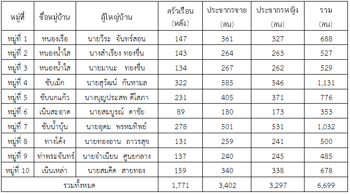 (ข้อมูลจากสำนักบริหารการทะเบียน กรมการปกครอง : อำเภอวัฒนานคร ณ เดือน 4 เมษายน 2556)