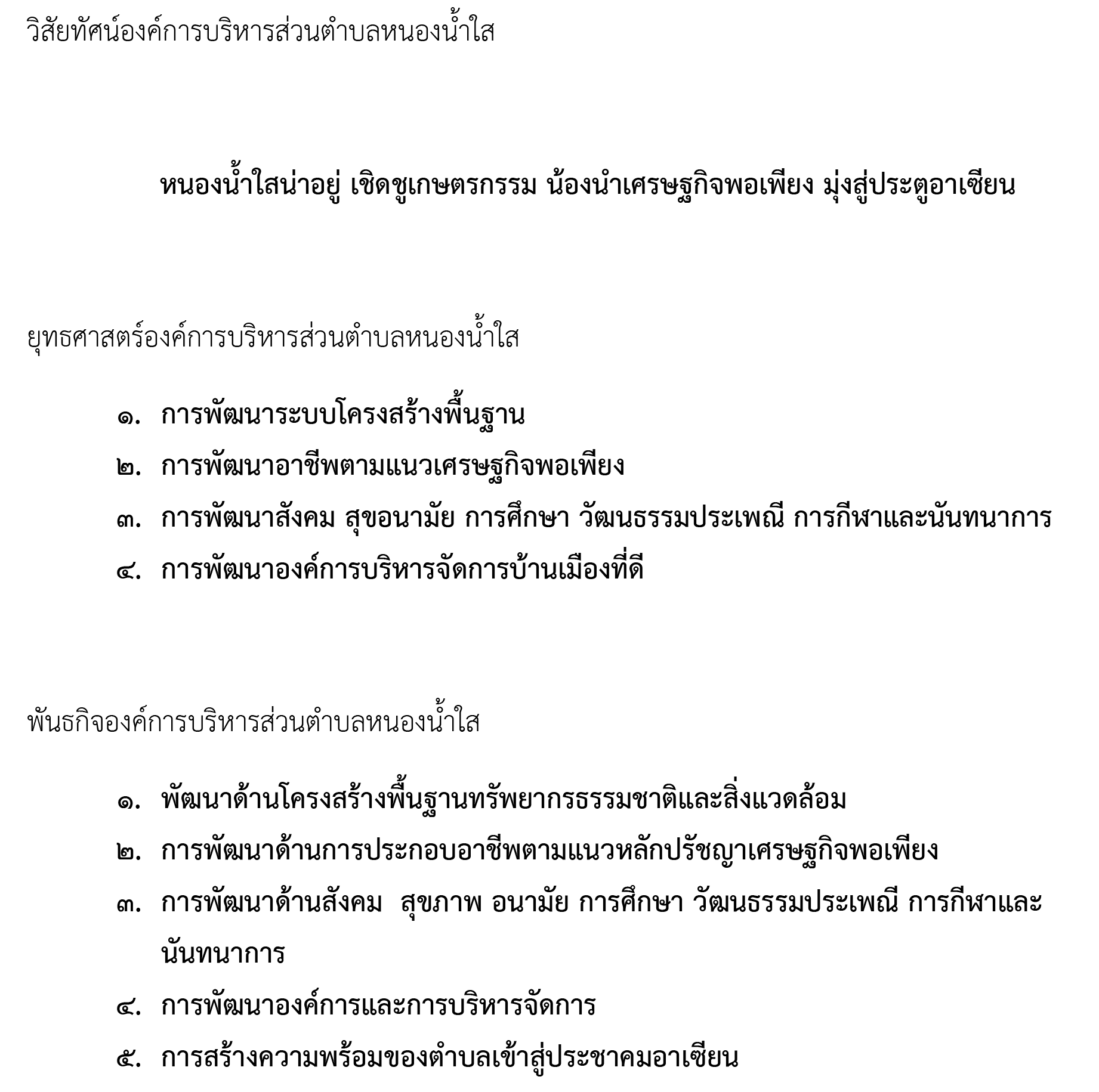วิสัยทัศน์องค์การบริหารส่วนตำบลหนองน้ำใส