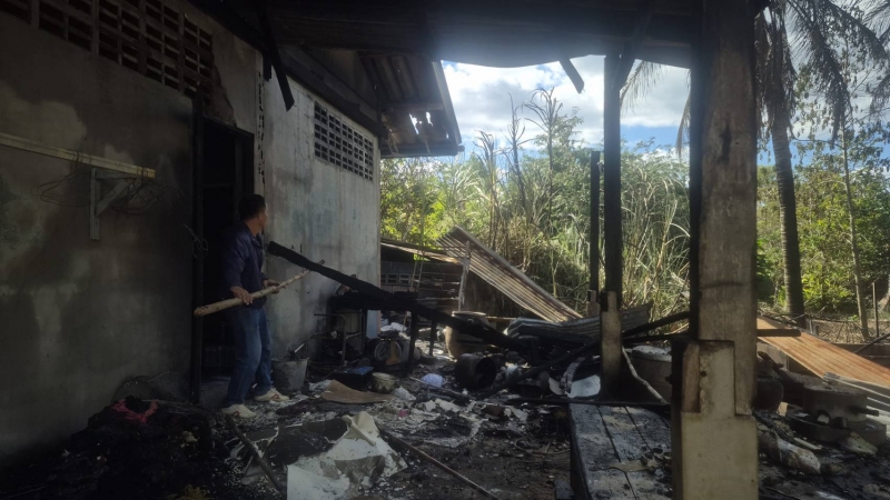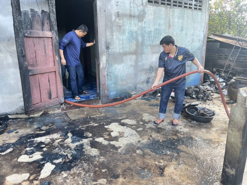 ตรวจสอบเบื้องต้น บ้านเสียหายเป็นบางส่วน ไม่มีผู้ได้รับบาดเจ็บ และเจ้าหน้าที่ จะได้ให้ความช่วยเหลือบ้านผู้ถูกเพลิงไหม้ต่อไป
